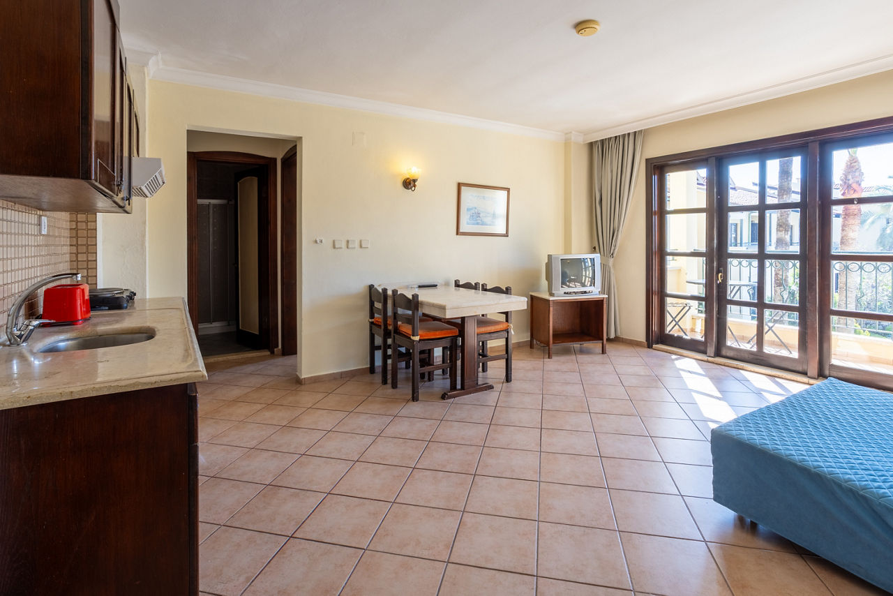 One Bedroom apartments sleep up to 4 adults and have bathroom containing a bath or shower, air conditioning, television, double cooking rings, fridge, kettle, toaster and balcony, French balcony or terrace. Two Bedroom apartments, which are larger in size, are also available.