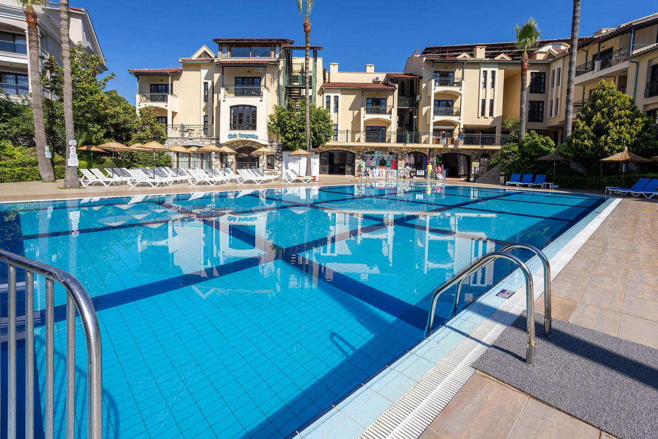 The Club Turquoise is in a great location, away from the hustle and bustle of Marmaris resort centre yet close enough if you want a change of scene. By day you can relax around the spacious pool area and enjoy a drink from the bar, and by night you can head into Marmaris and enjoy some traditional Turkish food. Apartments are traditional in style, comfortable and spacious and are a great self catering option in Marmaris.