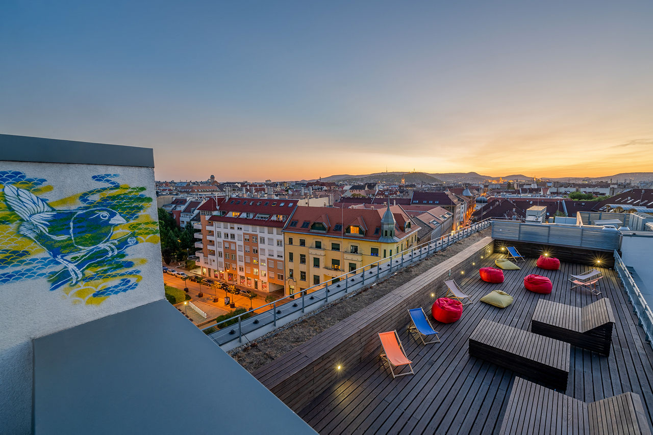 Dean?s Home Budapest is a modern and stylish accommodation located in the vibrant Ferencvaros area, close to the city centre and public transport links, making it easy to explore the city and Budapest?s famous attractions such as St Stephen?s Basilica and Andrassy Avenue. The property, split between student accommodation and guest rooms, offers a range of facilities, including a rooftop terrace with stunning views, a fully equipped gym, and spacious communal areas for relaxation and fun. Guests can enjoy contemporary rooms, and the on-site restaurant and café provides a delicious meal. Whether staying for a relaxing or an adventurous holiday, Dean?s Home Budapest ensures a comfortable and enjoyable experience.