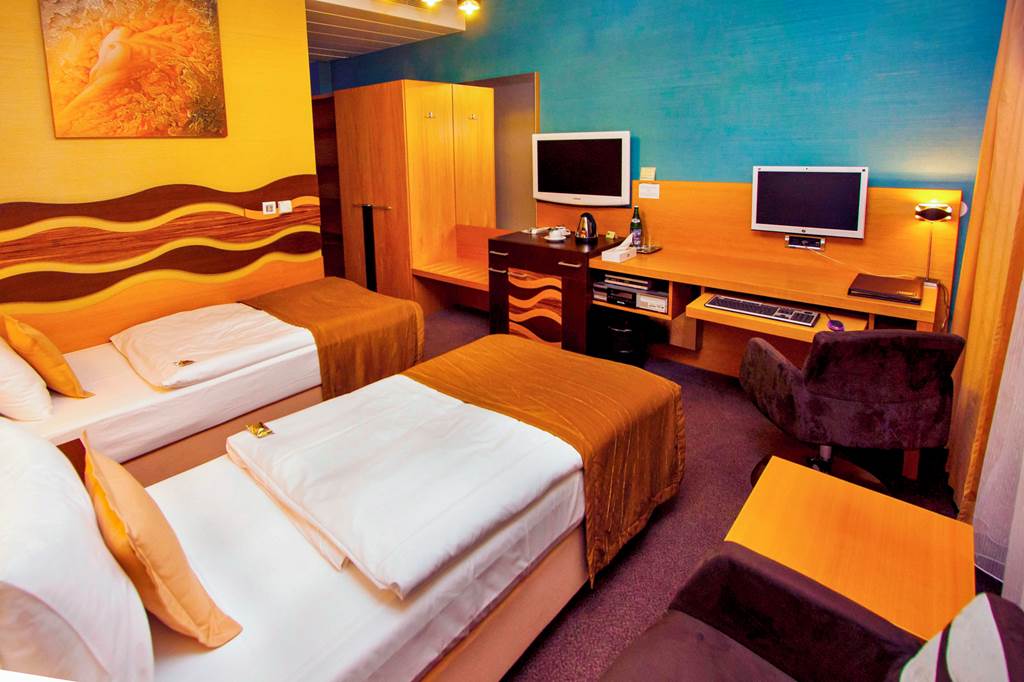 Standard Twin rooms sleep up to 2 adults and have a bathroom containing a shower, air conditioning, hairdryer, safety deposit box, television, kettle and mini bar*. Room upgrade options and Sole Use rooms are also available.