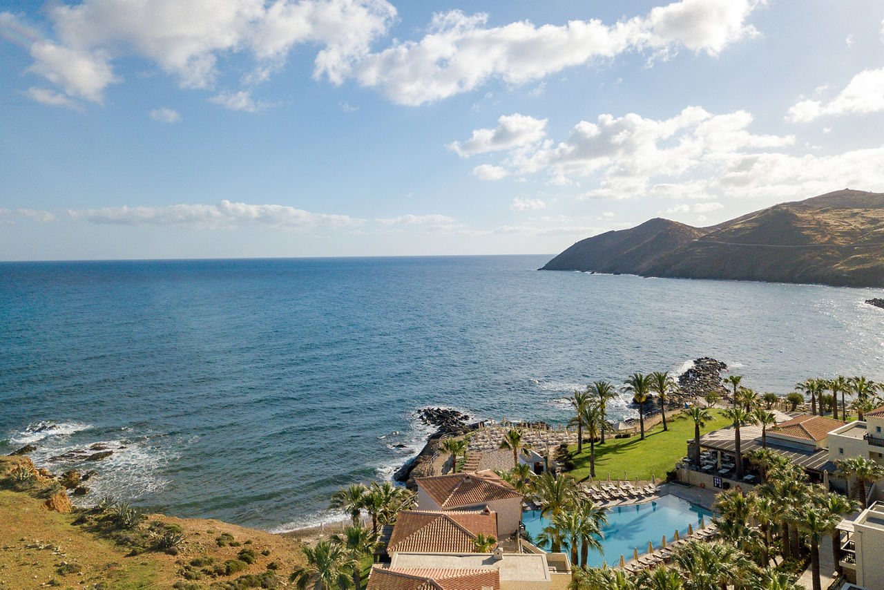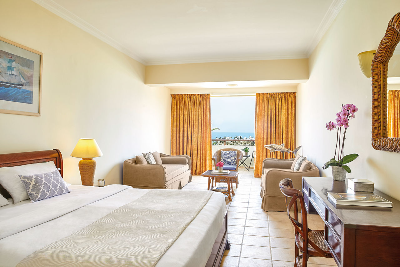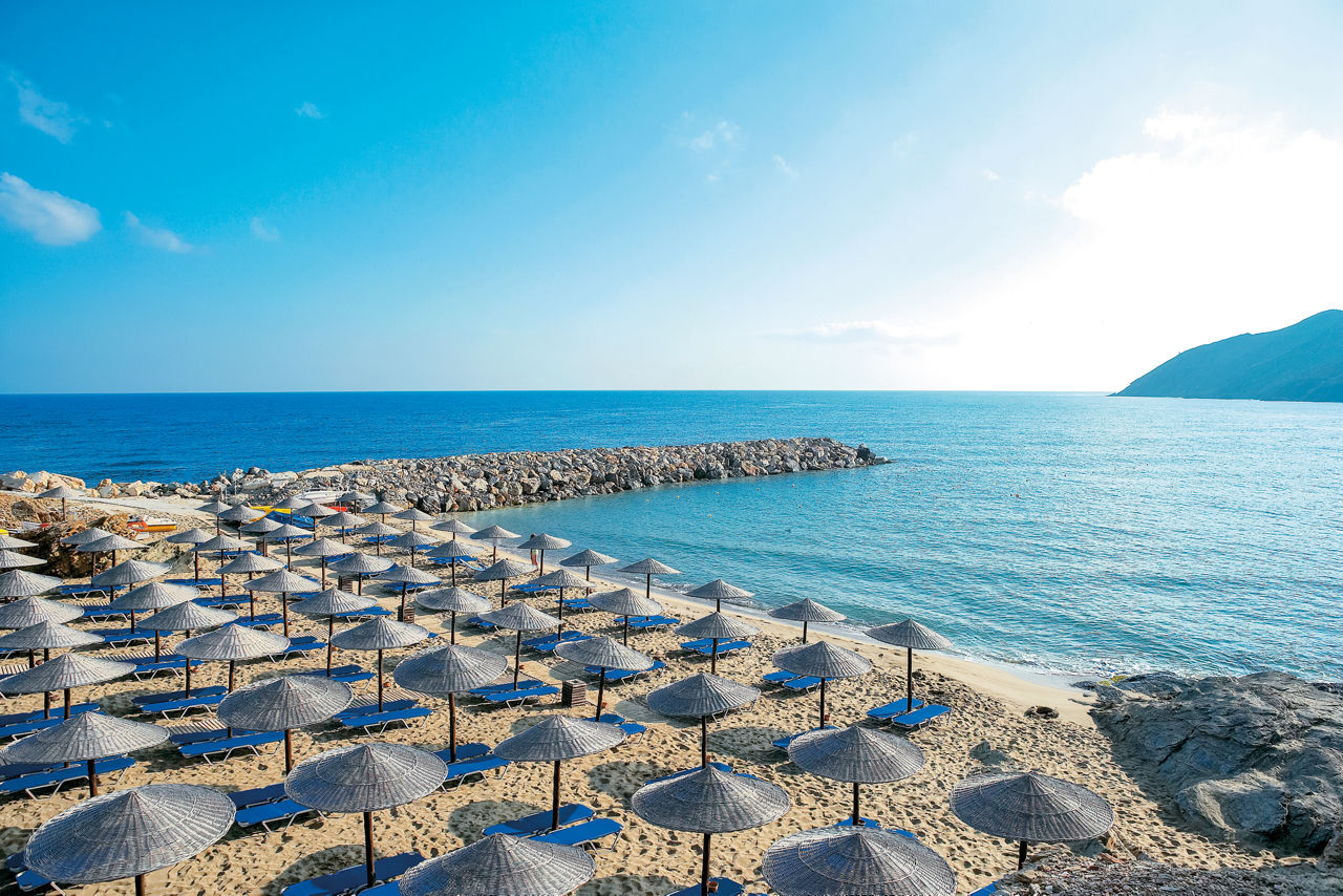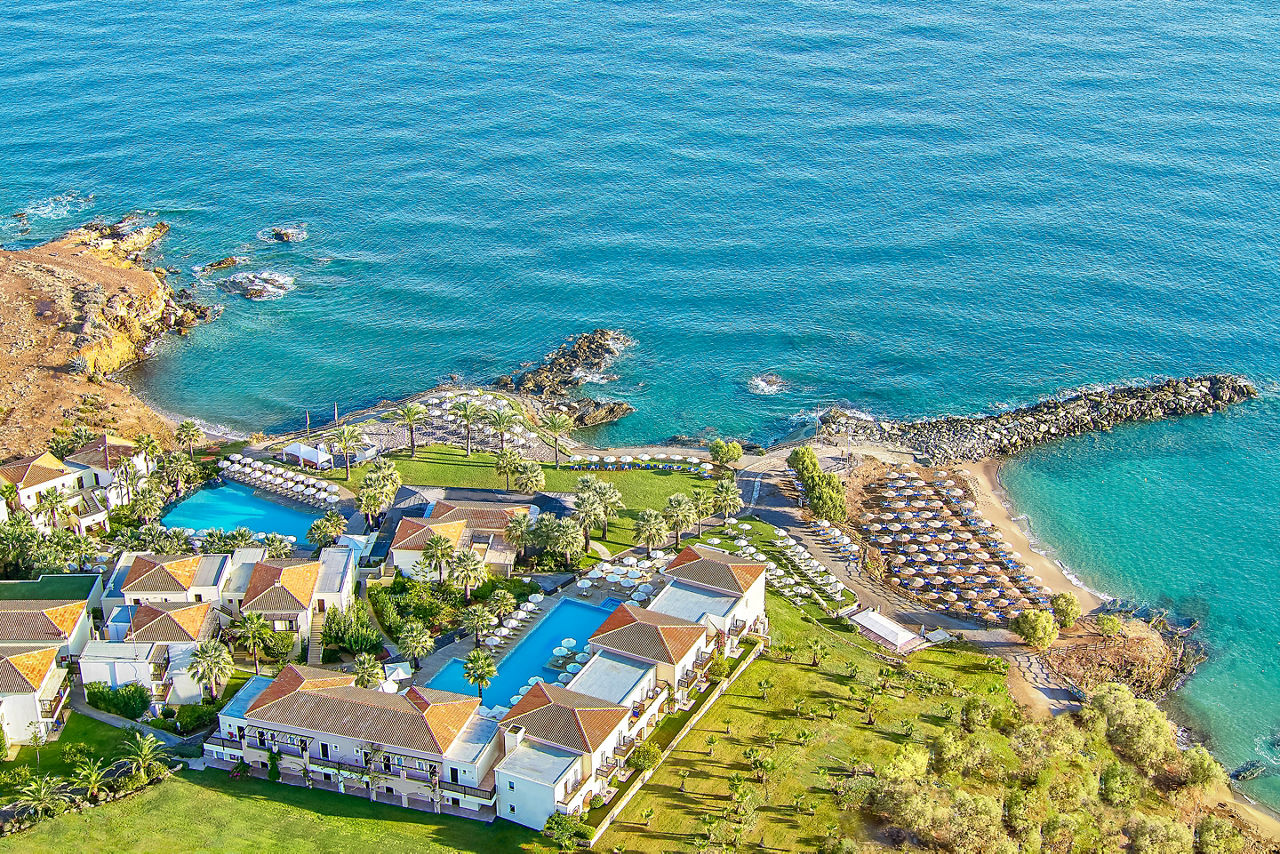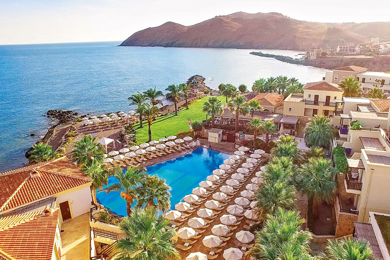 Designed to reflect a Cretan village, the Grecotel Marine Palace & Aqua Park offers an excellent All Inclusive getaway with fun for all the family. Children can make a splash at the on-site waterpark 'Kingdom of Poseidon', with its excellent slides and splash park while adults can relax and indulge in spa treatments and fine dining. Traditional in style, rooms are spacious and well-equipped and there are numerous bars and restaurants throughout the property to satisfy all tastes. A short walk will bring you to the pretty fishing village of Panormos; where winding streets full of taverna?s and bars come to life at night.