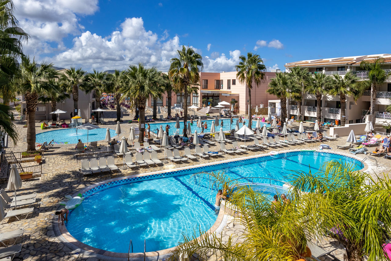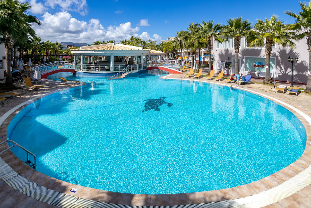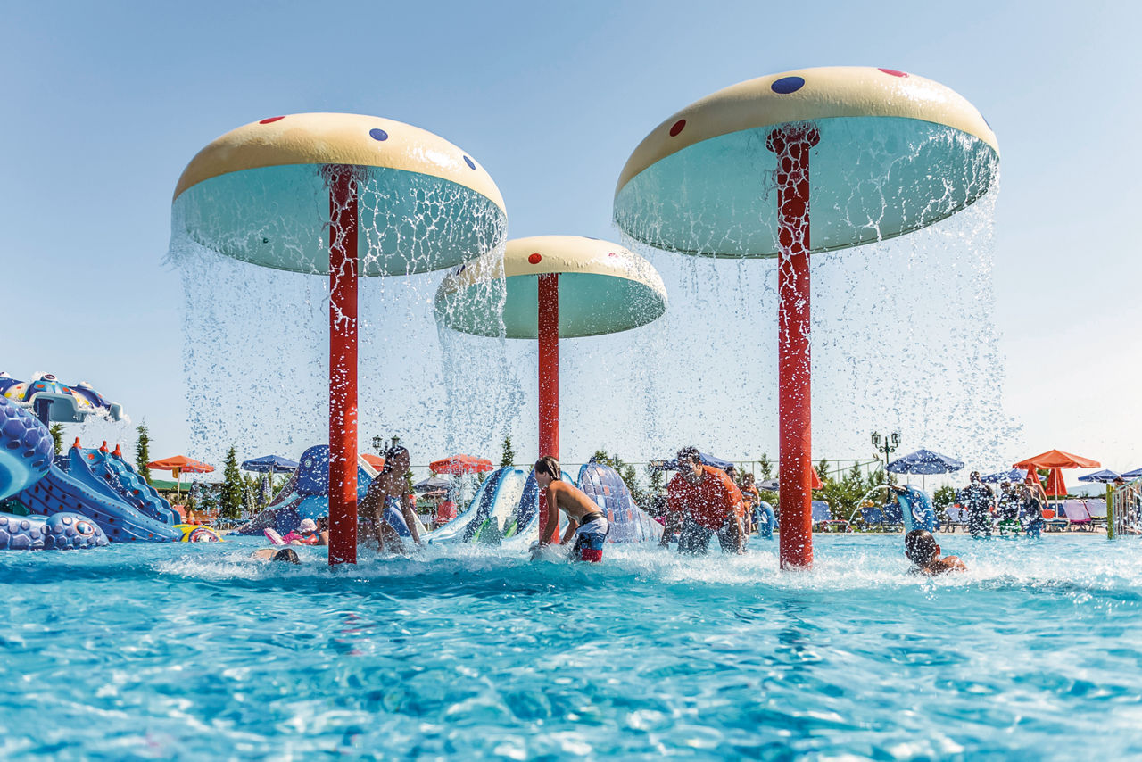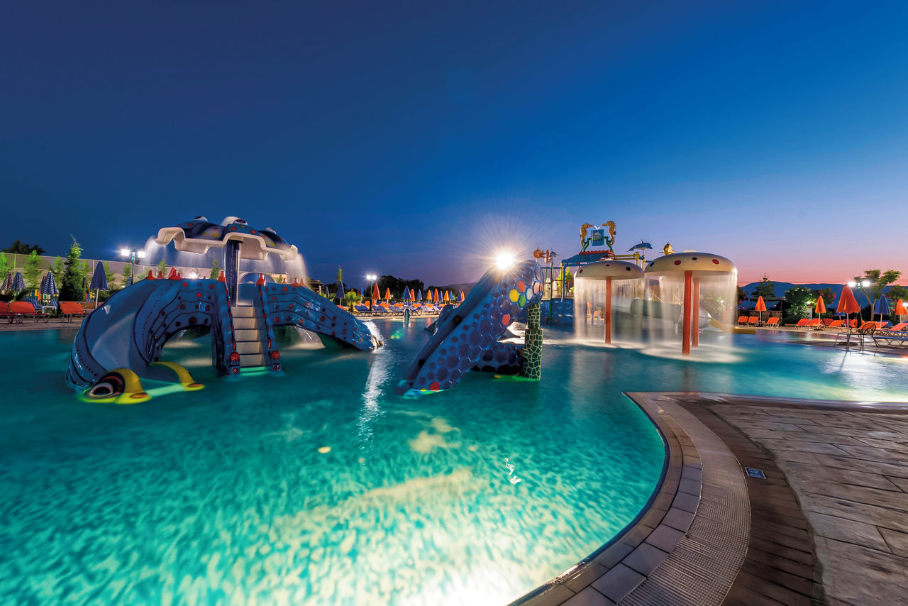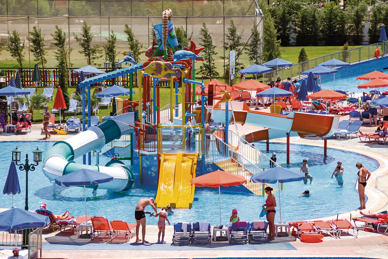 This place couldn?t be better for families! As you?ll see from its name, the resort has a fantastic waterpark to brag about. There are two tip-top outdoor pools as well. You?ll find comfy family-sized rooms and apartments, each one handily on All Inclusive. Two restaurants mean rumbling tums will be a thing of the past. Need to quench your thirst? You?ll spy a whopping five bars on the complex! Local shops and eateries and the sun-splashed beach are all within easy reach. But when you?re staying on-site, you might just hear the soothing spa and children?s playground calling?