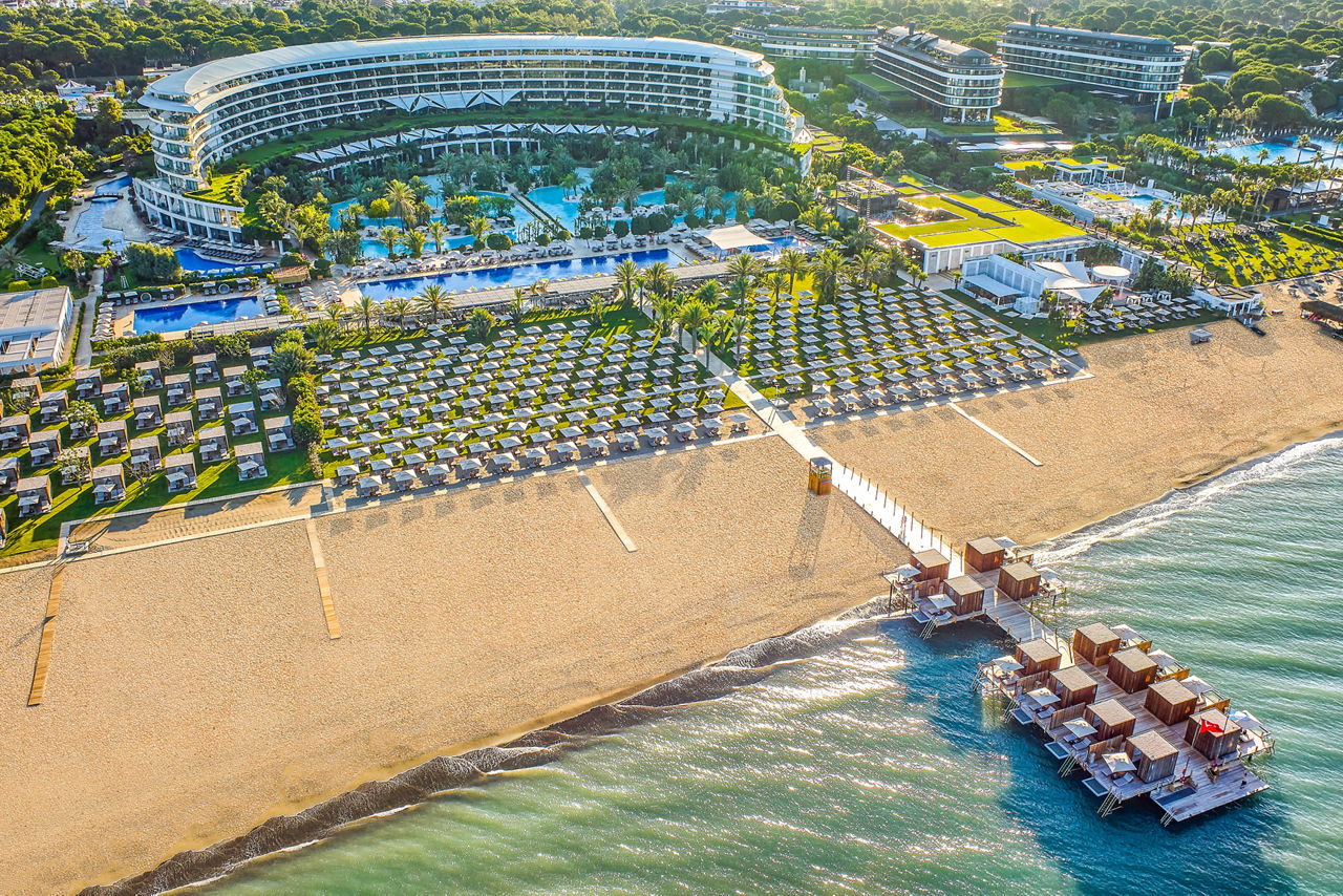 Magnificent both inside and out, the Maxx Royal Belek Golf Resort is indulgent down to the very last detail. Experience grandeur all around as you marvel at the resort?s luxurious modern interior, outstanding facilities and breathtaking surrounding views. Golfers will be in their element thanks to the famous on-site Montgomerie Golf Course whilst food connoisseurs will be spoilt for choice at over 20 incredible restaurants and bars serving a range of global cuisines. A world of its own, this opulent resort is completed with an on-site waterpark and its own golden beach and pier.