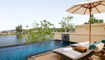 Dusit Thani Laguna Phuket, a sanctuary of tranquility and shaded by casuarinas and coconut palms, features unique neo-colonial architecture blended with modern Thai style. Gentle breezes waft through the vaulted ceilings of the open-air lobby, carrying the gentle sound of breaking waves from the adjacent Bang Tao beach.