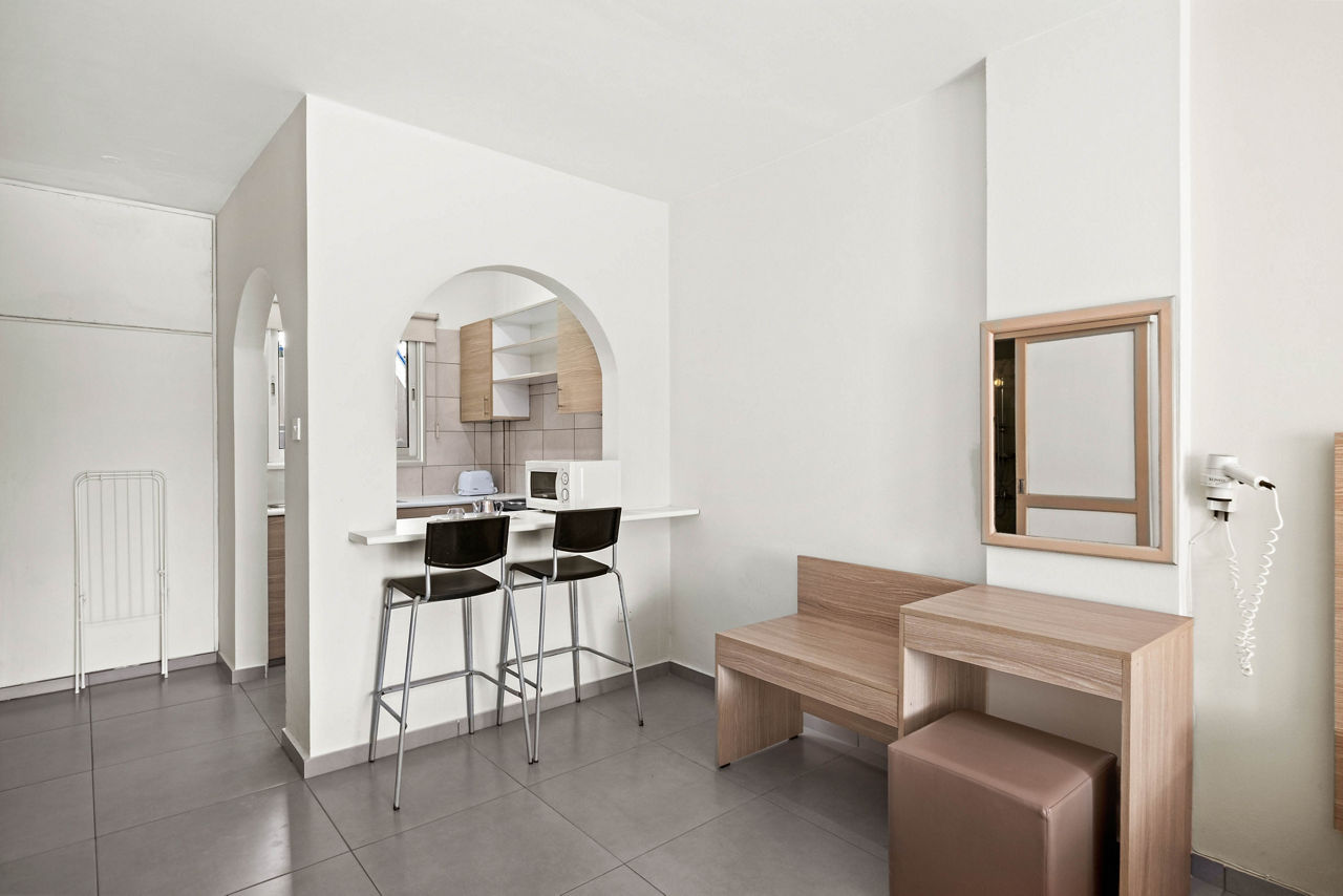 Superior studios sleep up to 3 adults and have bathroom containing a shower, air conditioning, hairdryer, bathrobe and slippers, flat screen television, kitchenette with 2 cooking rings, oven, fridge, microwave, kettle and toaster and balcony or terrace. Superior One Bedroom apartments are also available.
