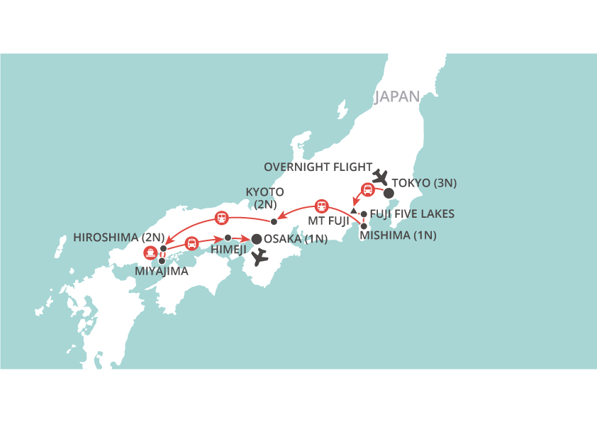 Be captivated by the unique culture of Japan as you discover lively Tokyo, beautiful Mt Fuji and historic Kyoto. A visit to Hiroshima's Peace Memorial and the holy island of Miyajima complete this fascinating tour.