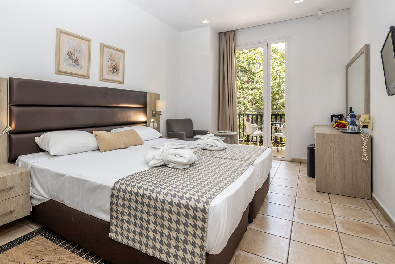 Deluxe rooms with Garden View sleep up to 3 adults and have twin beds, full bathroom, hairdryer, air conditioning, TV and a balcony. Deluxe rooms with Sea View and Deluxe rooms for Sole Use are also available.