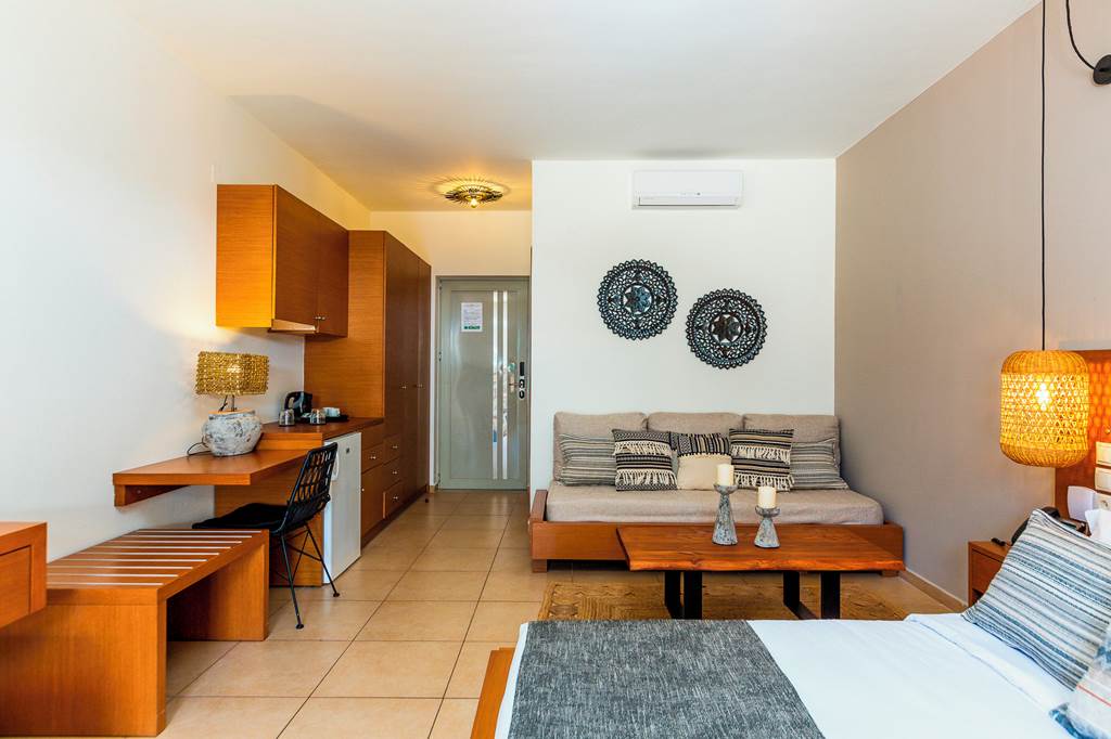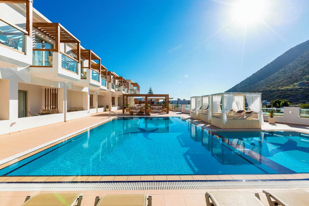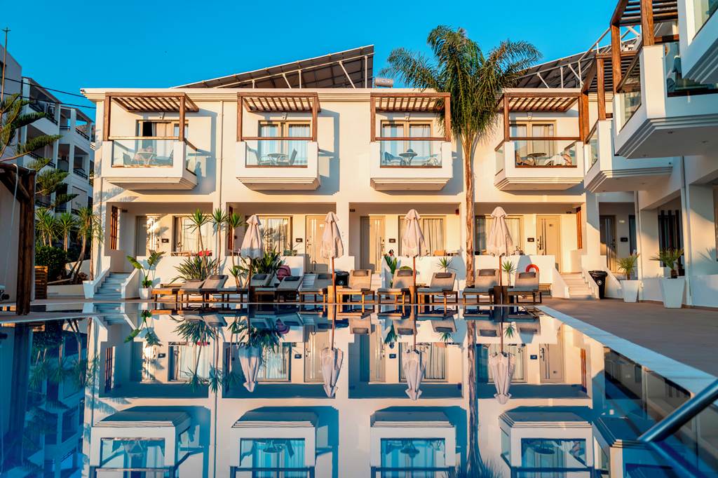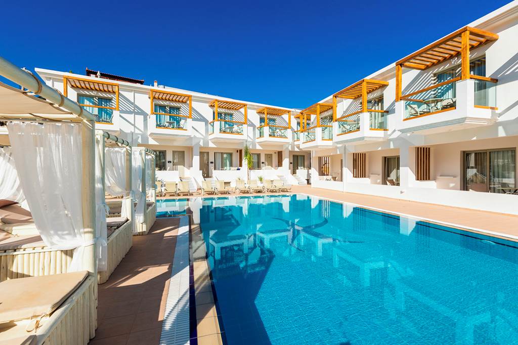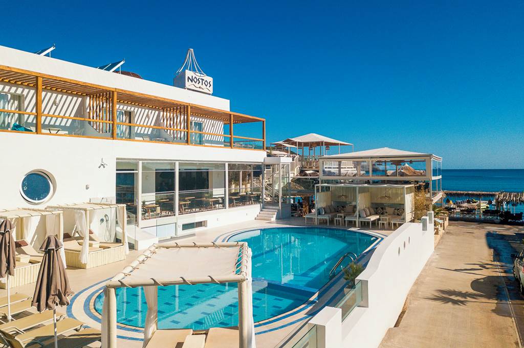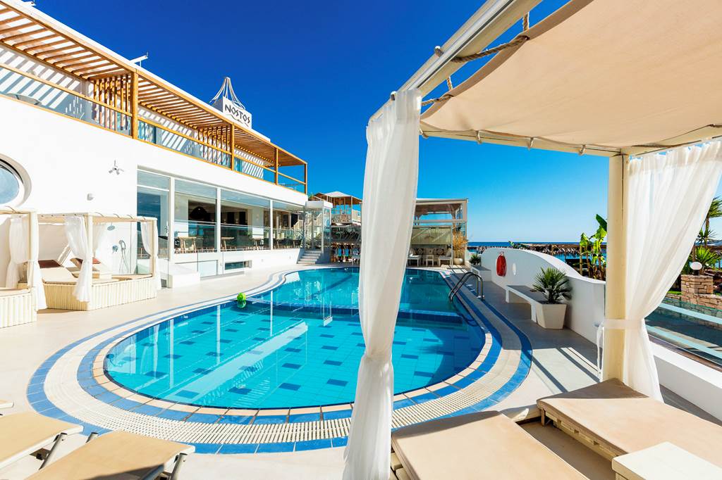 Boutique by name, and boutique by nature. Nostos Beach Boutique Hotel boasts the perfect location just steps from the beach. Cosy loungers by the pool, beach bar at your fingertips and the mountains in the background offering the perfect setting. Sip a cocktail at the bar, or opt for the buffet before retiring to the comfortable rooms.
