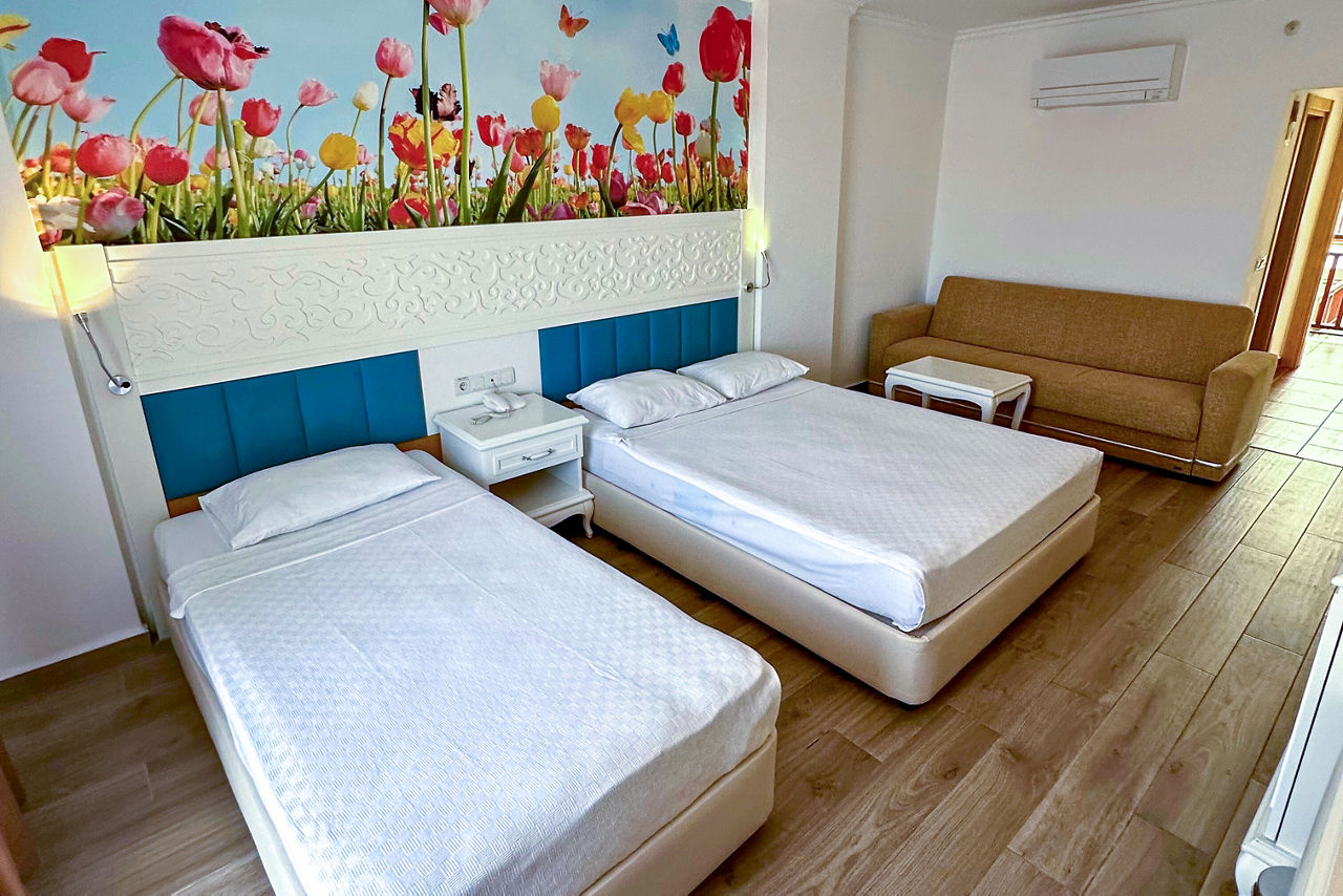 Standard Double and Twin rooms sleep up to 3 adults or 2 adults and 1 child and have a bathroom with shower over bath, hairdryer, air conditioning, satellite TV and balcony or terrace. Two Bedroom Family rooms sleeping up to 4 adults or 3 adults and 1 child, Three Bedroom Family rooms sleeping up to 5 adults or 5 adults and 1 child and Standard Double and Twin rooms for Sole Use are also available.