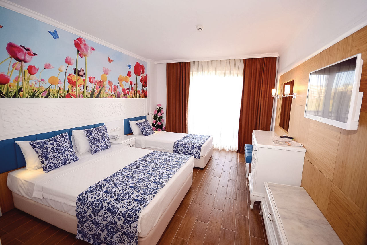 Eftalia Village offers a fun-filled holiday for the whole family. Enjoy a fantastic pool area featuring a thrilling aqua park that kids will love. Adults can unwind at the poolside bars or take a dip in the adults-only pool for some relaxation. The real highlight is the access to the Eftalia Island beach complex, where you?ll find a variety of entertainment options, exciting waterslides, a children?s club and a range of bars and restaurants. It really is the perfect destination for a fantastic family-friendly holiday!
