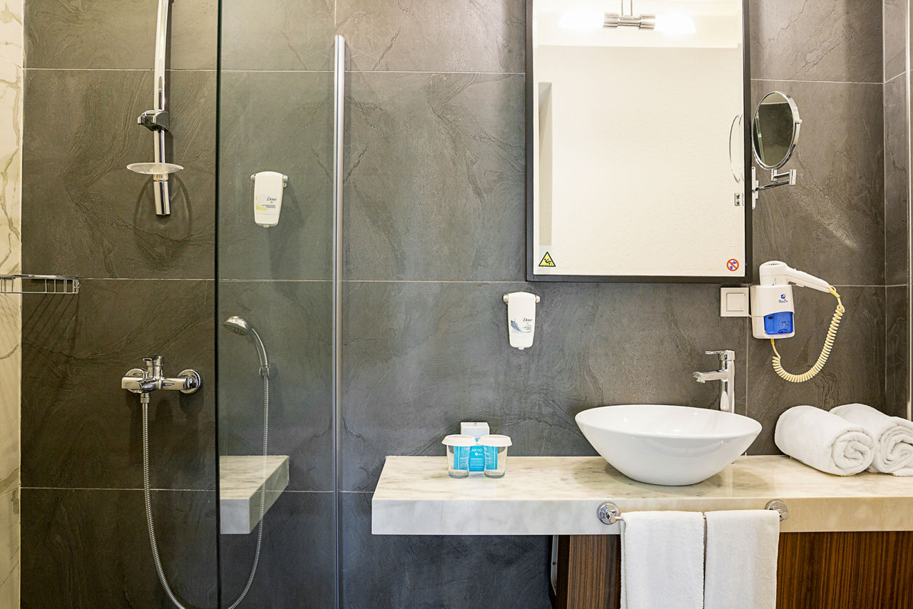 Standard Double or Twin rooms sleep up to 3 adults and have bathroom containing a shower, air conditioning, hairdryer and television.