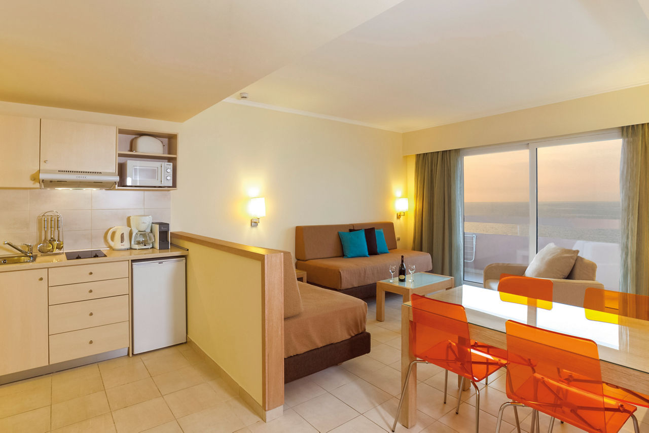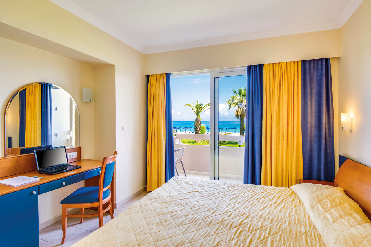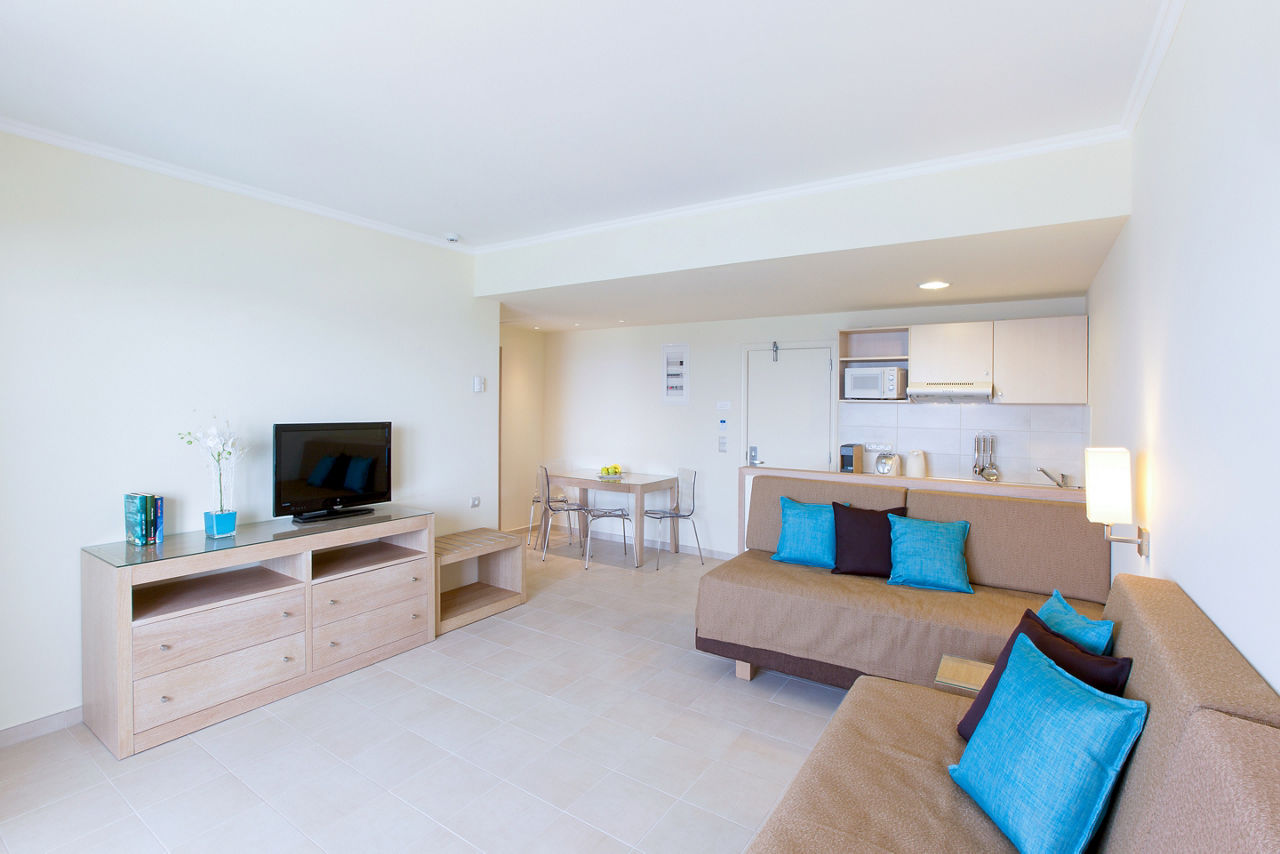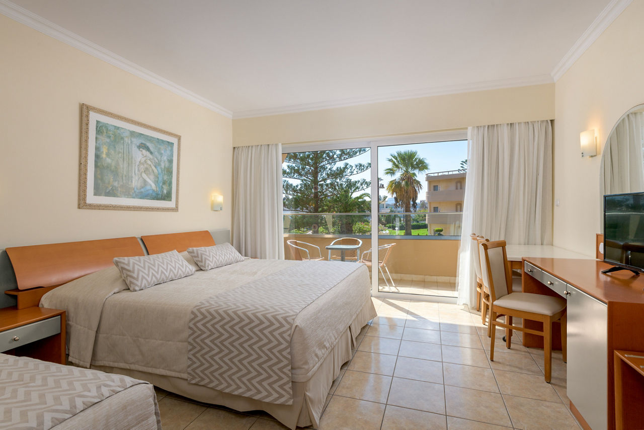 Standard twin rooms sleep up to 3 adults and have a bathroom containing a bath with shower attachment, air conditioning (01 Jun-30 Sep), hairdryer, television, fridge and balcony or terrace. Standard Family rooms, Superior Twin rooms, Deluxe suite apartment with Garden View, Deluxe suite apartments with Sea View and Double room for Sole Use are also available. Deluxe suite apartments also have coffee making facilities, bathrobe and slippers, dvd player, double cooking rings, microwave, fridge freezer and toaster.