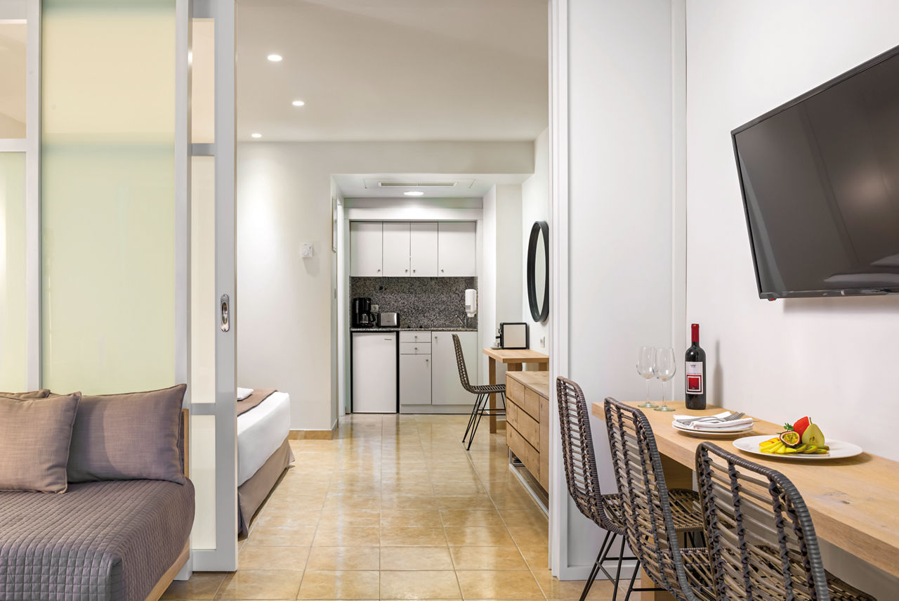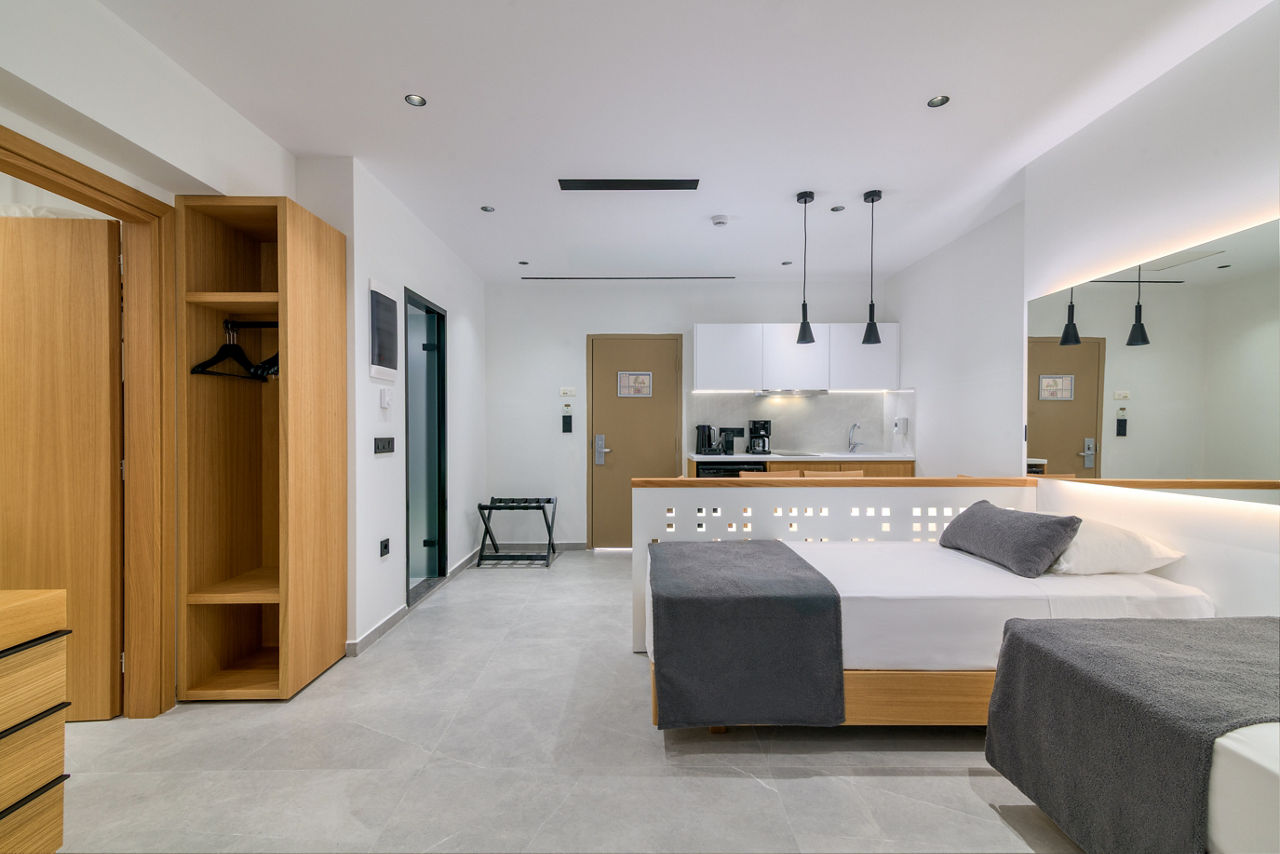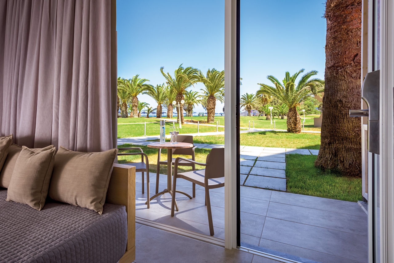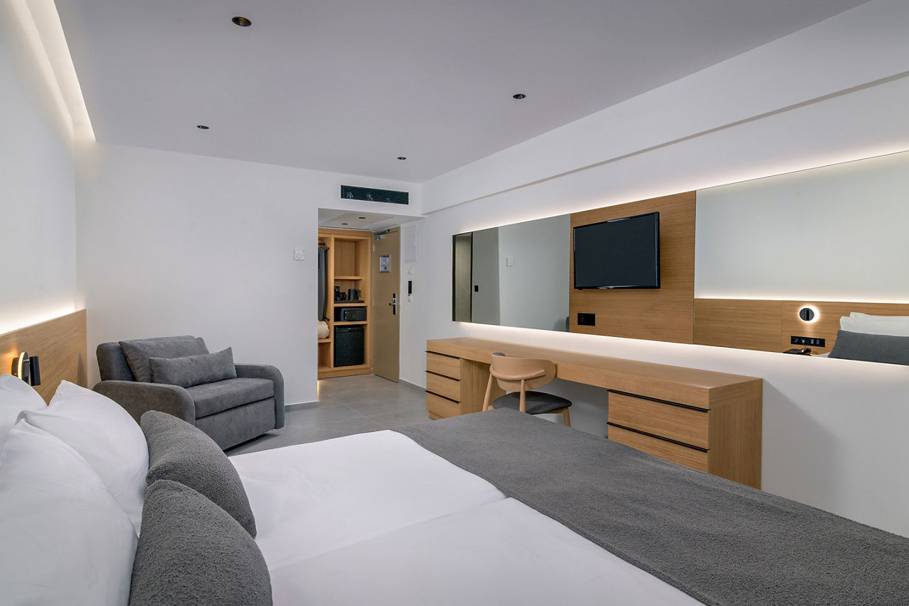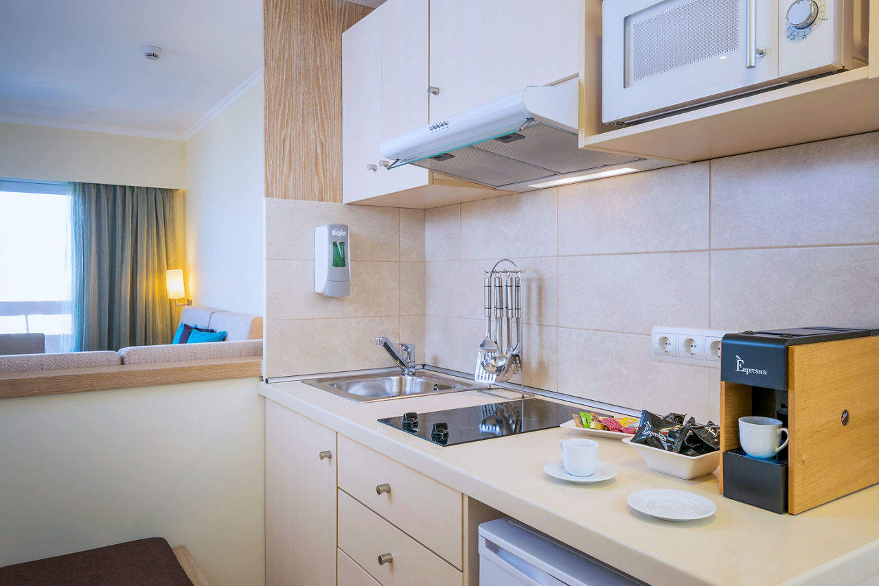 Standard twin rooms sleep up to 3 adults and have a bathroom containing a bath with shower attachment, air conditioning (01 Jun-30 Sep), hairdryer, television, fridge and balcony or terrace. Standard Family rooms, Superior Twin rooms, Deluxe suite apartment with Garden View, Deluxe suite apartments with Sea View and Double room for Sole Use are also available. Deluxe suite apartments also have coffee making facilities, bathrobe and slippers, dvd player, double cooking rings, microwave, fridge freezer and toaster.