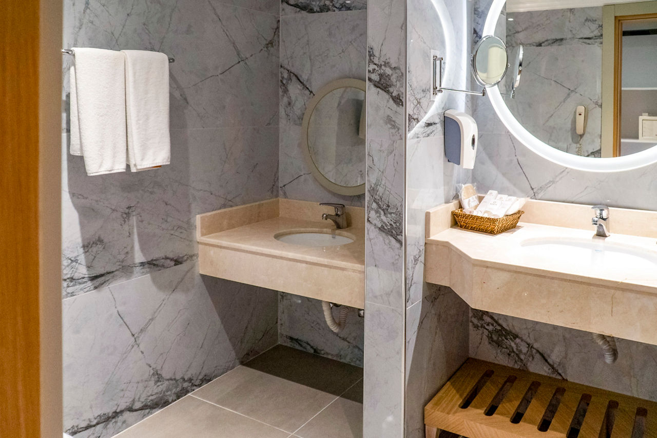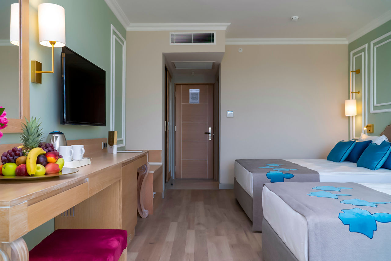 Standard Double or Twin room land view rooms sleep up to 3 adults and have bathroom containing a bath or shower, air conditioning, hairdryer, bathrobe and slippers, safety deposit box, flat screen television, kettle, mini bar* and balcony. Room upgrade options and Sole Use rooms are also available.