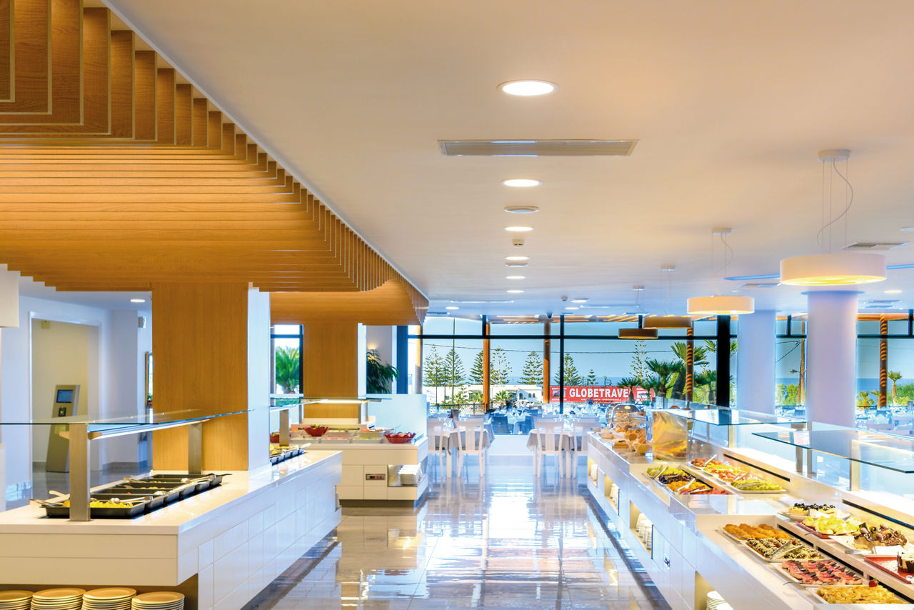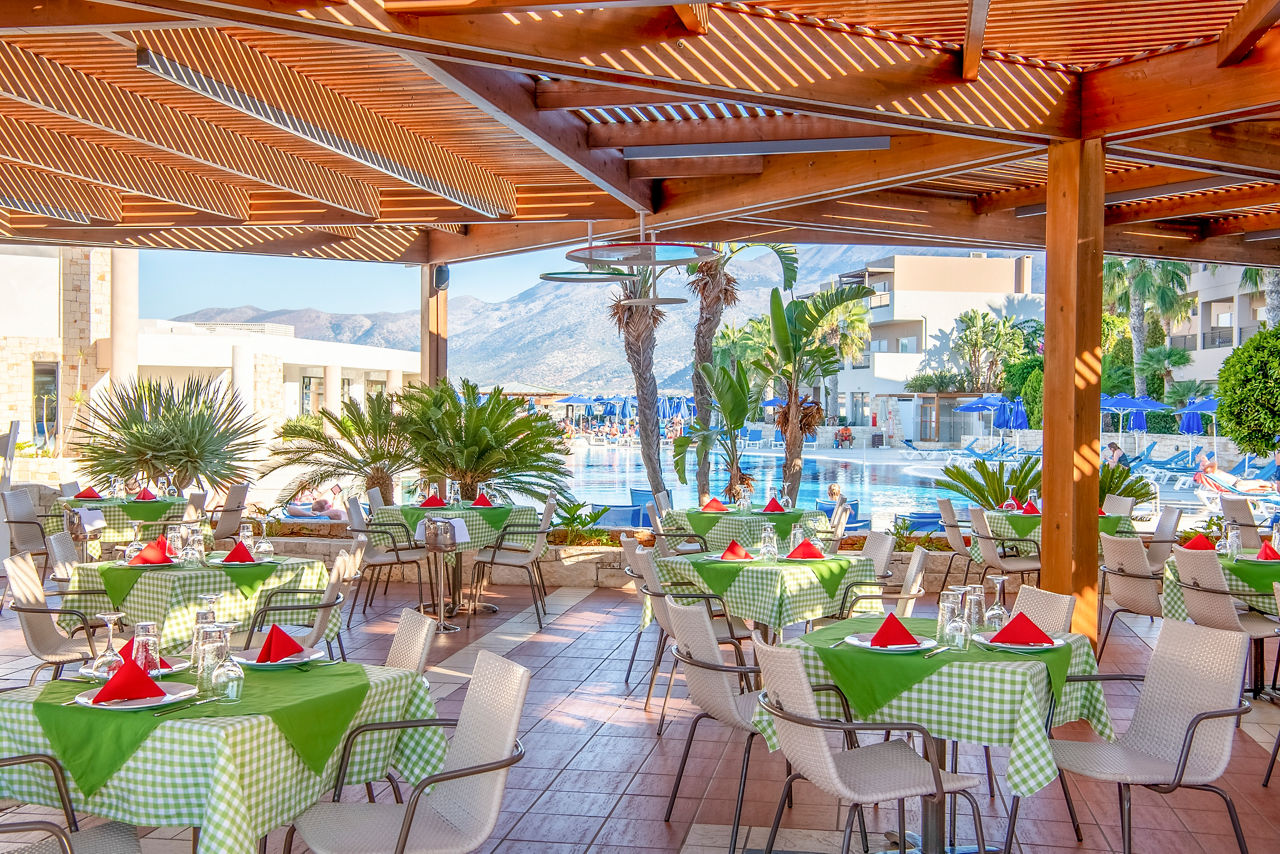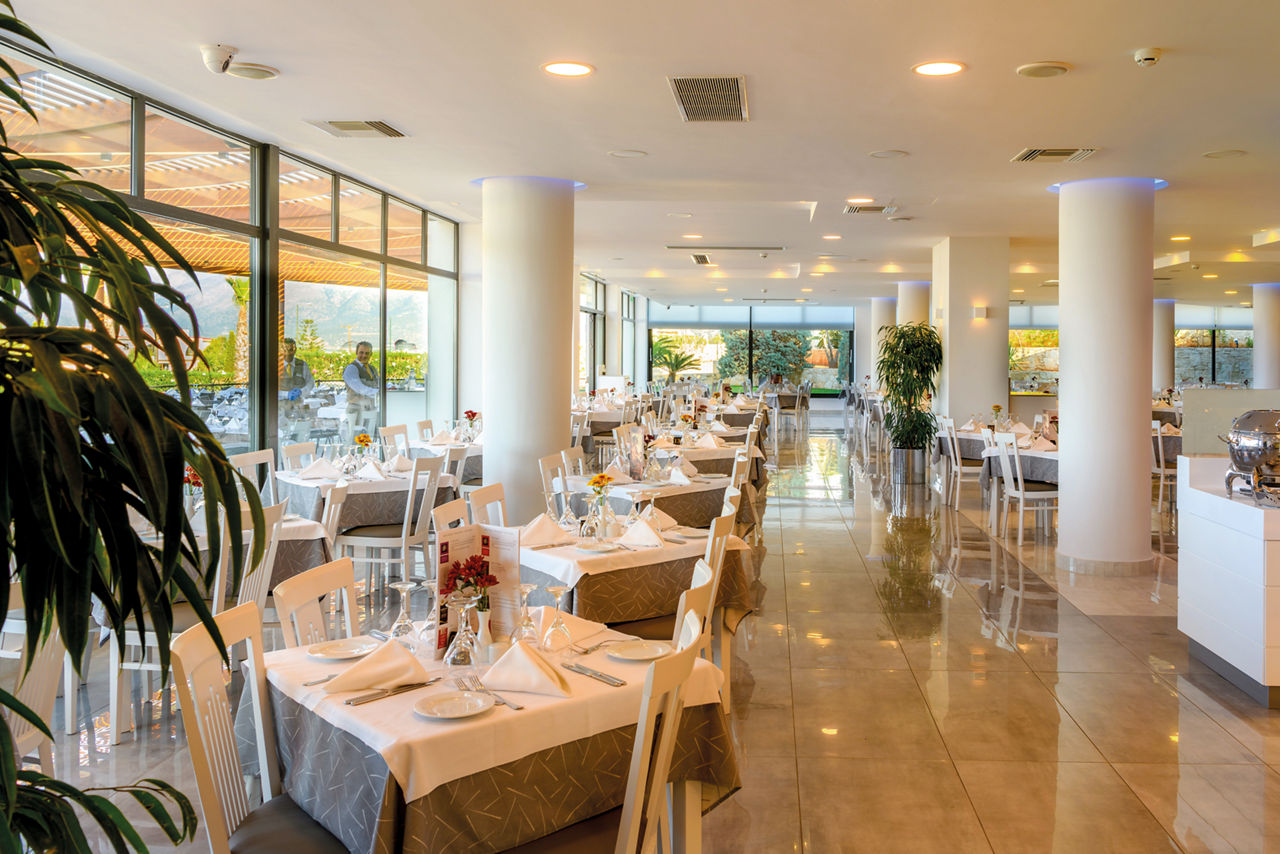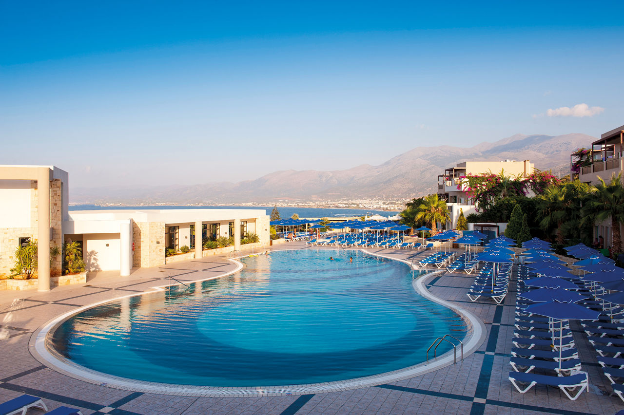 The Grand Hotel Holiday Resort sits on a peaceful hillside between the bustling resorts of Hersonissos and Stalis. Guests will appreciate the excellent pool areas, ranging from an action-packed waterpark suited to families, to a more chilled out adults only relaxation pool for couples looking to get away from it all. There?s something for everyone here including a number of restaurants serving up sumptuous buffets and à la carte specialities and a variety of rooms to suit all party sizes too.