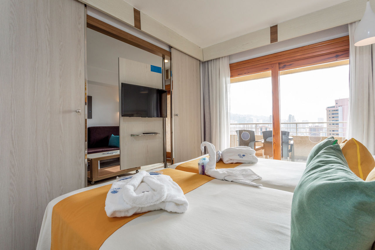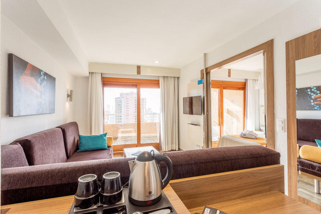 Welcome to one of Benidorm?s most popular properties. This stylish, all-suite complex is equipped with fantastic facilities, modern d?cor and an incredible location. You?ll find Sandos Benidorm Suites within walking distance of the award-winning Levante Beach and Benidorm?s buzzing nightlife. You can enjoy the fantastic entertainment programme, ? la carte restaurant and an on-site Indian eatery. There are also excellent children?s facilities, such as movie nights, a lounge with games consoles and a playground! Multiple outdoor pools, comfortable sunbeds for poolside lounging and delightful suites to retreat to await at Sandos Benidorm Suites.