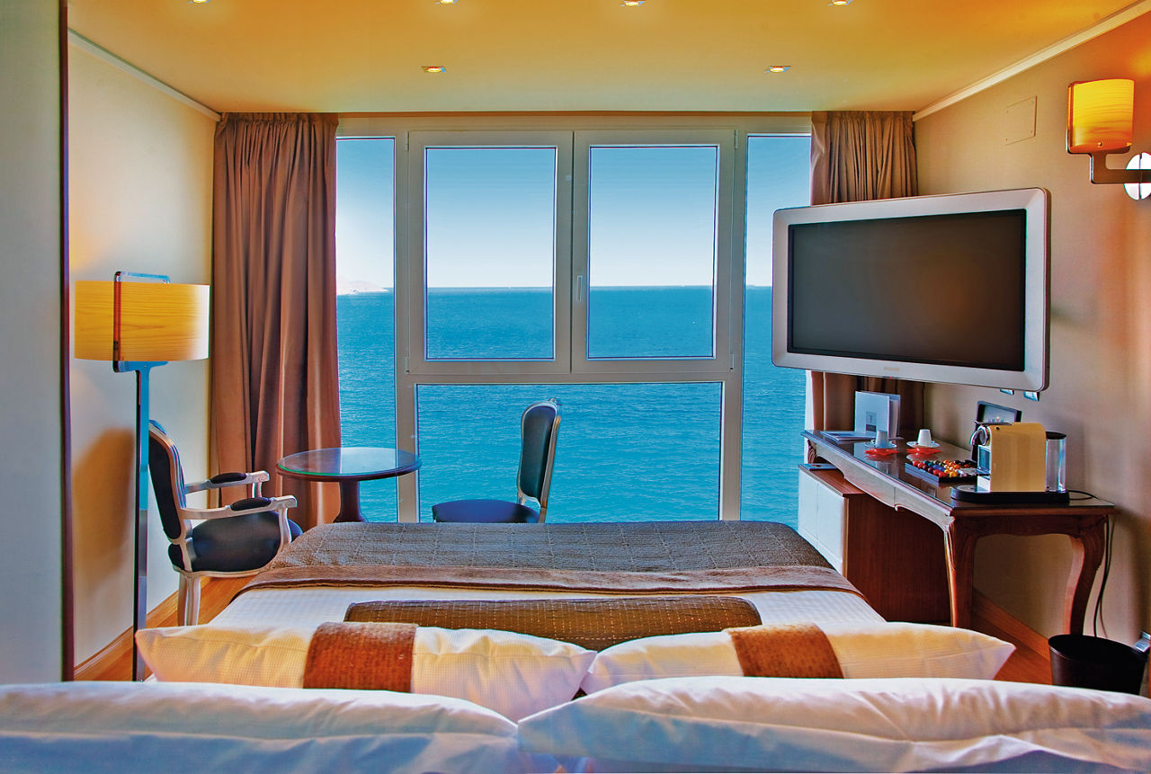 Supreme Standard rooms sleep up to 2 adults and have a full bathroom with whirlpool bath and separate shower, air conditioning, satellite TV, pillow menu, tea and coffee making facilities and . Deluxe Junior suites with Sea View sleeping up to 3 adults and have a separate living area with 40? flat screen TV and games console. Supreme Single rooms with Sea View are also available.