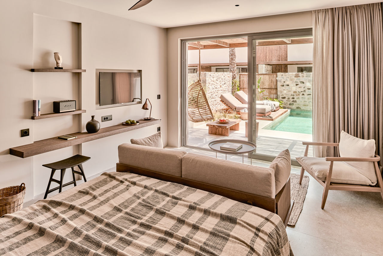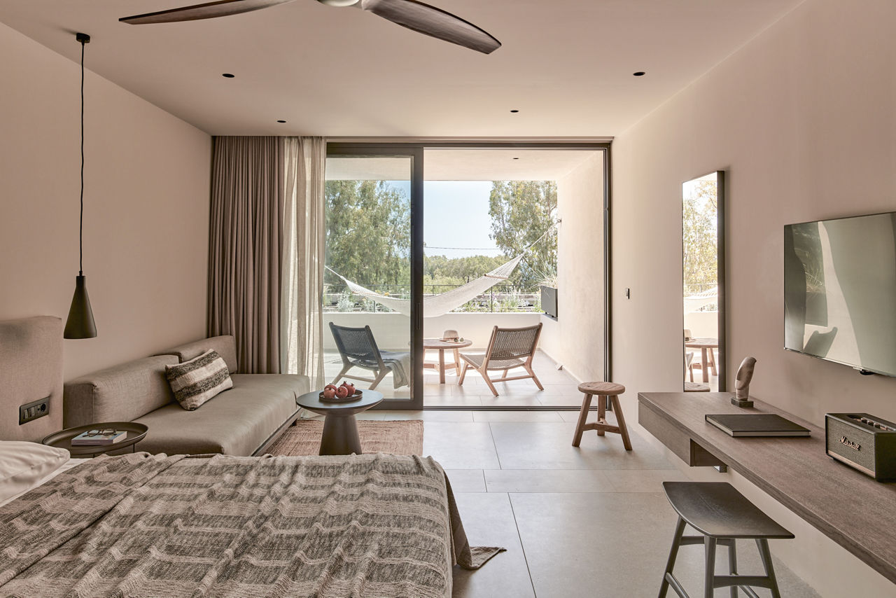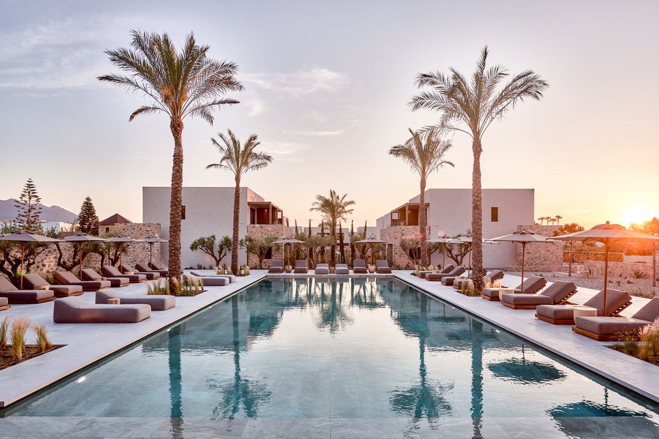 Just moments from the beach, Theros All Suite Hotel offers couples a perfect chance to unwind. Here, you'll find a stunning outdoor pool area, complete with stone tiles, plush sunloungers and palm tree lined fringes. Rooms are decored in a modern, chic style of earthy neutral tones and offer a comfortable space to relax. Lazy days can be spent between the pool or the beach, whereas at night, Kos Town with its tavernas and cocktail bars is in easy reach.