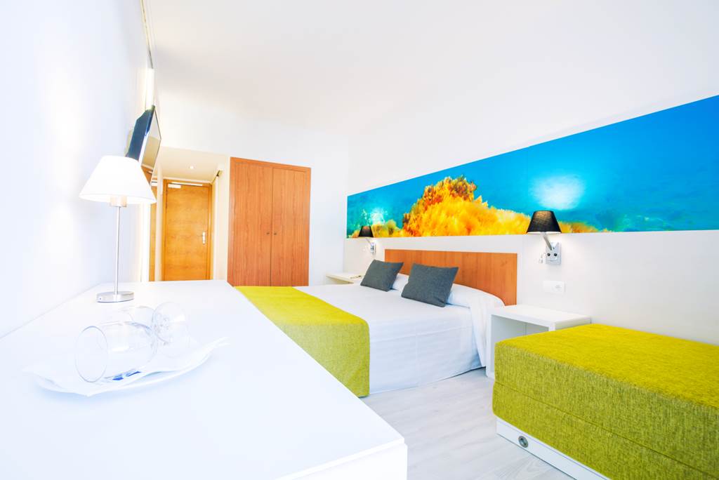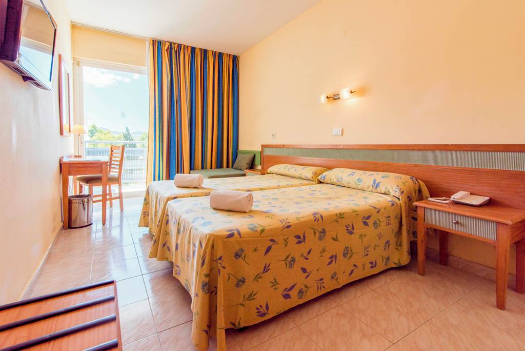 Double and Twin rooms sleep up to 2 adults and 1 child and have a full bathroom, air conditioning, satellite TV and a balcony or terrace. Double and Twin rooms for Sole Use, Quadruple rooms and Promotional Twin rooms which sleep a minimum of 4 adults and a maximum of 6 adults, consisting of two rooms (not guaranteed to be located next to each other) are also available.