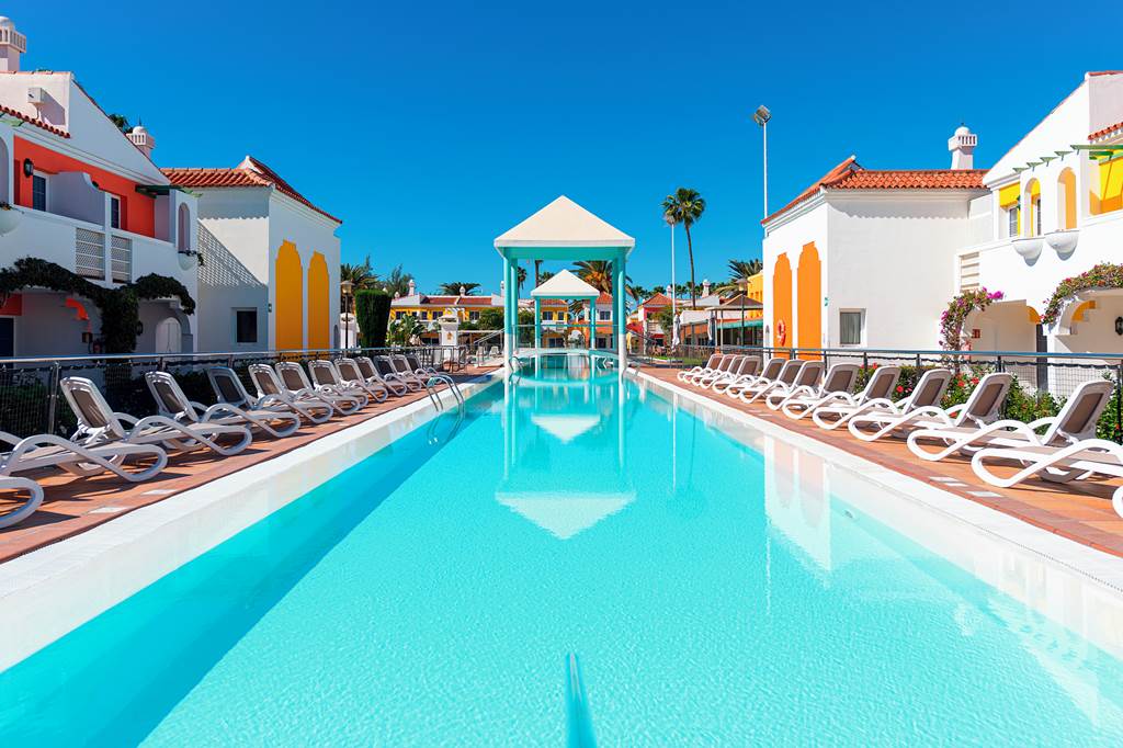 Enjoying a fabulous and peaceful location right next to the Maspalomas golf course, this colourful complex has a friendly, village feel centred around a gorgeous swimming pool. These spacious 2 storey bungalows have a homely feel and are perfect for a relaxing sunshine holiday. The famous sand dunes of Maspalomas are close by, as well as the upmarket resort of Meloneras, where you can indulge in designer shopping or watch the world go by in one of the many bars and restaurants on the seafront promenade. The party town of Playa Del Ingles is also just a short taxi ride away!