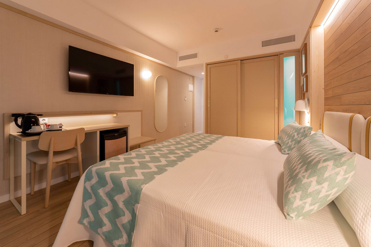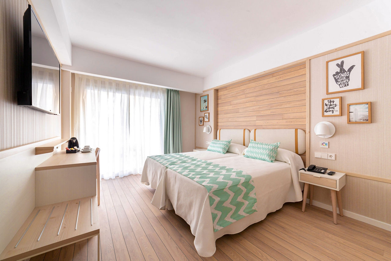 Twin rooms sleep up to 3 adults and have a flat screen satellite TV, air-conditioning, bathroom with bath (shower over bath) and balcony. Twin rooms with Side Pool View and Single rooms are also available.