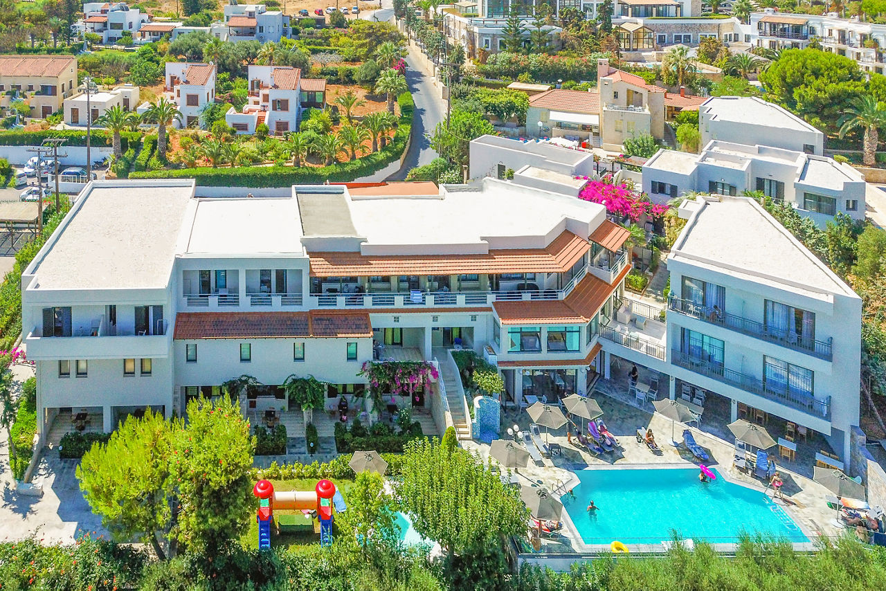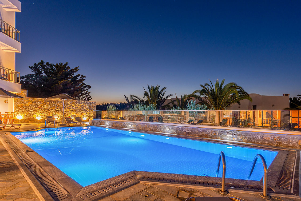 Nestled in the heart of Crete, Anna Maria Village is a charming escape with beautiful architecture and lush gardens that create a serene atmosphere. The tranquil surroundings are perfect for unwinding by the lovely pool or enjoying a peaceful moment in the well-maintained grounds. Indulge in delicious Mediterranean cuisine at the Lounge Bar Restaurant, where the à la carte menu showcases fresh, flavourful dishes. Whether you're looking to relax or explore, this accommodation offers an ideal base. Anna Maria Village is a relaxed spot for your Cretan getaway. You can expect high-quality service from this family-run hotel.