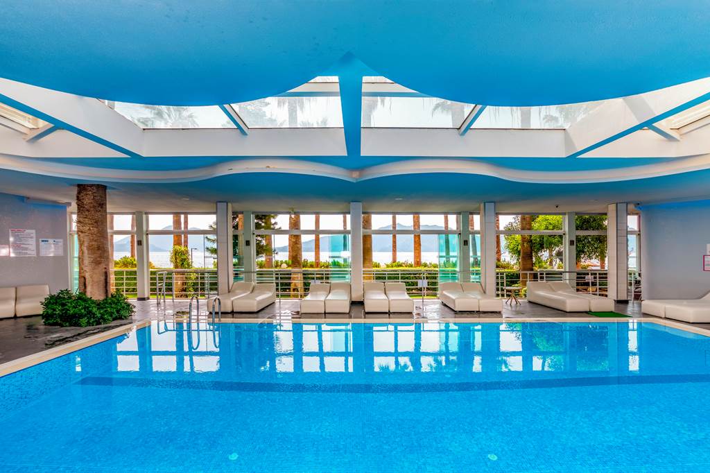 Situated in a beautiful beachfront location, Prime Beach Hotel offers an array of fantastic facilities. The hotel has bright, modern and stylish rooms which will ensure a comfortable stay. Spend your days soaking up the sun and the lively atmosphere of the large outdoor pool area which is adorned with lush palm trees. There are plenty of activities, such as a state of the art gym, as well as a splash park for the kids. Alternatively, you can rest and recuperate at the hotel?s spa in the Turkish baths. The wonderful facilities mean there is something for everyone ? making this hotel perfect for a fun-filled holiday in Marmaris!