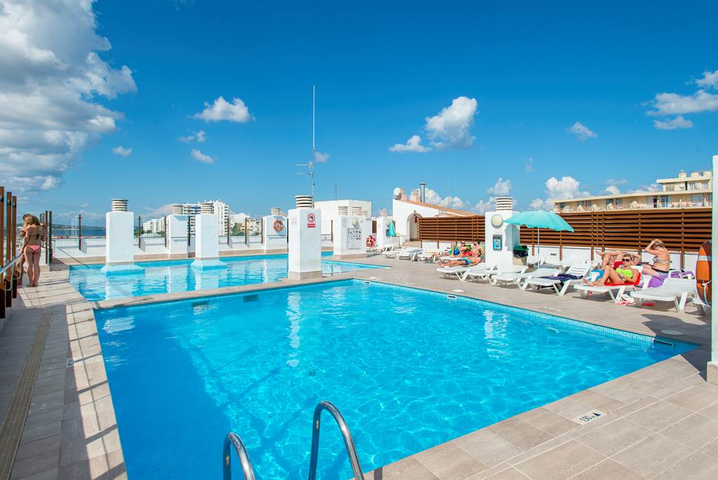 In the heart of sun-kissed San Antonio, this lively apartment complex is a great base for an Ibizan escape. Plus Es Paradis and Eden are just around the corner ? handy, much? Think Insta-worthy sea views from the rooftop pool and a Disco Bus to Playa d'En Bossa just a short walk away!
