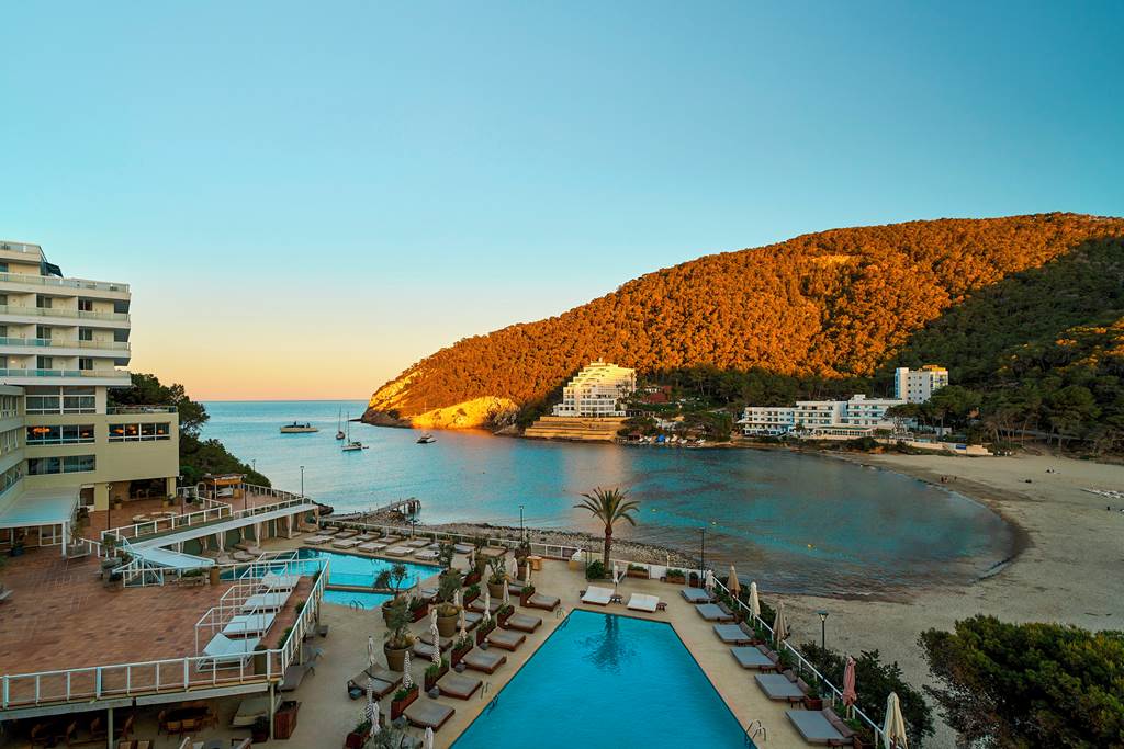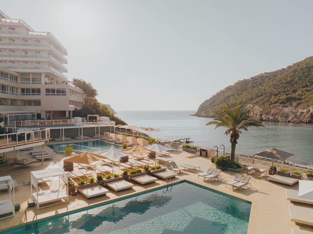 The Mondrian Ibiza hotel is a luxurious and contemporary retreat with a sleek design and vibrant atmosphere. Situated close to the stunning shores of Cala Llonga, the hotel boasts breath-taking views of the Mediterranean Sea and direct access to the beach. Its avant-garde architecture, featuring geometric shapes and bold colours inspired by the famous artist Piet Mondrian, creates a visually stunning backdrop for a truly unique experience. With luxurious amenities, ocean front poolside DJs, stylish rooms and suites and state of the art fitness centre, the Mondrian Ibiza offers a haven of relaxation and indulgence - perfect for couples or friends looking for a sophisticated Balearic break. For those who fancy exploring, Ibiza town is just a short drive away with many bars, restaurants and the UNESCO site, Dalt Vila.