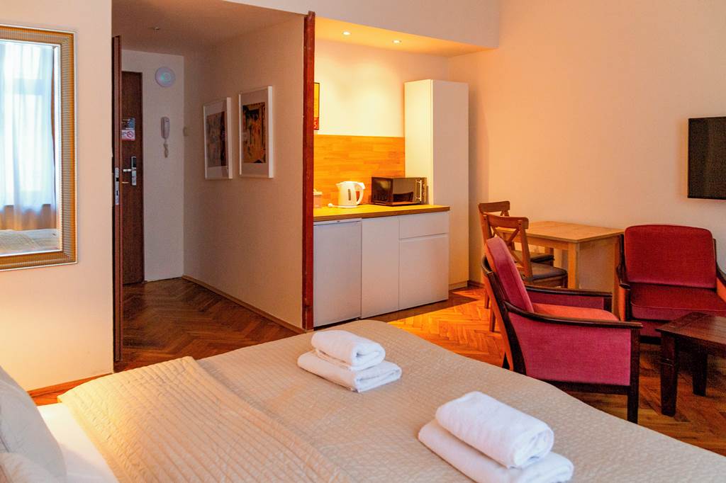 Studio and apartments sleep up to 3 adults and have bathroom containing a shower, air conditioning, hairdryer hob, fridge, cooking utensils, coffee making facilities, iron and ironing board, flat screen television and safety deposit box. Room upgrade options rooms are also available.