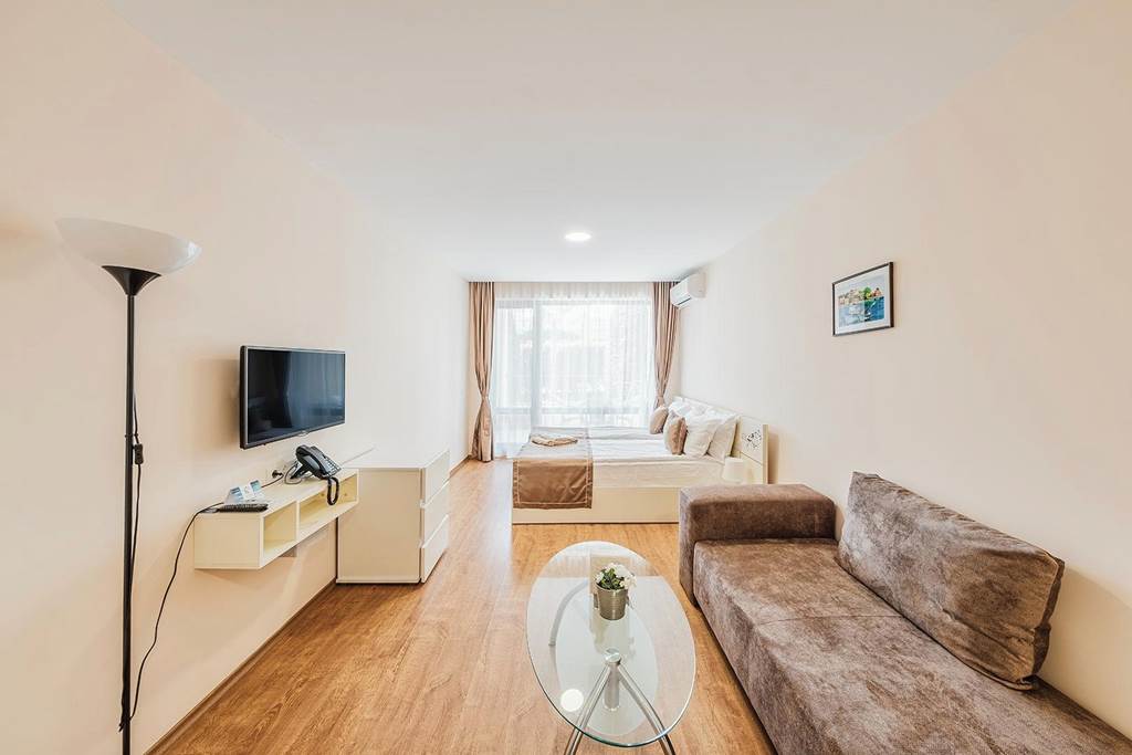 Studios sleep up to 2 adults and have bathroom containing a shower, air conditioning, hairdryer, fridge, kettle, microwave, toaster and balcony or terrace. Room upgrade options are also available.