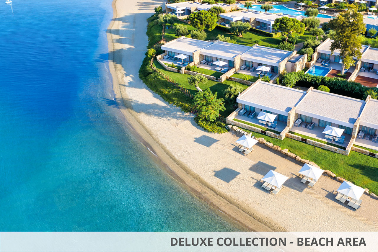 Nestled within manicured lawns, right on the beachfront, Ikos Olivia is a showstopper. Whether you relax on the white sand or a lounger by the three pools, you?ll be experiencing pure bliss before you know it. The chic rooms and bungalows are splendidly stylish, and you can put your feet up there too. All Inclusive Plus as standard makes dining in the five exceptional restaurants even better. There?s a huge choice of gourmet cuisine. A beach beverage service, children?s club, replenishing spa, full gym and six superb bars? You can prepare to feel like royalty here in Halkidiki.