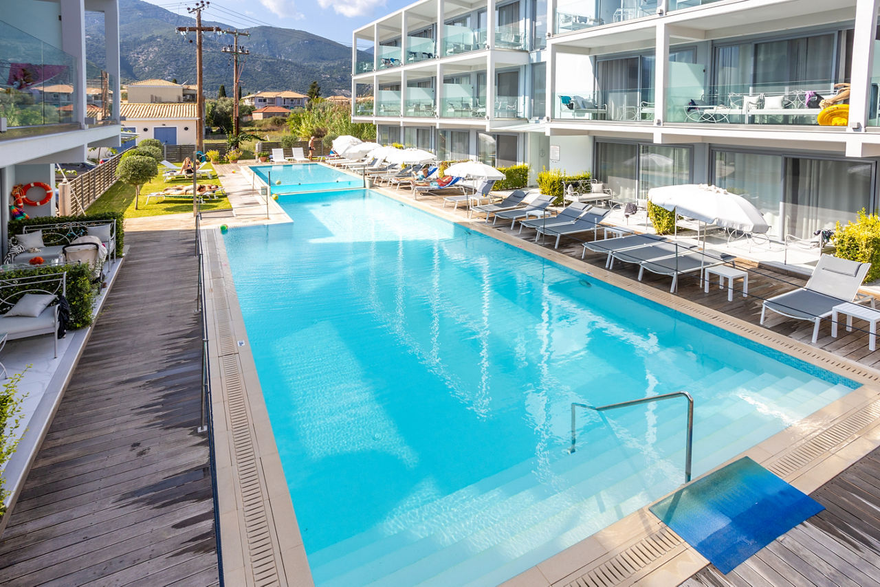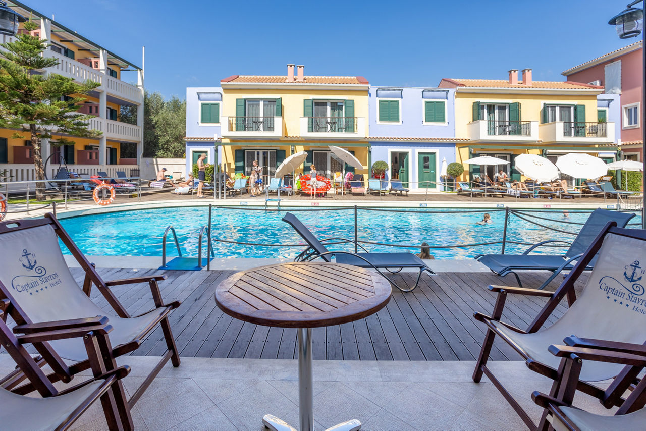 Welcome to Captain Stavros, where Greek hospitality meets seaside charm. This colourful hotel offers a relaxing escape with comfortable rooms and friendly service. There?s a duo of pools to soak up the sun by, and a bar that takes care of the refreshments. Make the most of the hotel?s impressive postcode and explore Nidri, it?s just a short walk away and is home to some great local restaurants. Bed and Breakfast is the standard board here, so you?ll have plenty of opportunities to try the local cuisine! The spacious rooms sleep up to six, making this a great option for families. Stay at Captain Stavros, and a charming Greek getaway awaits.