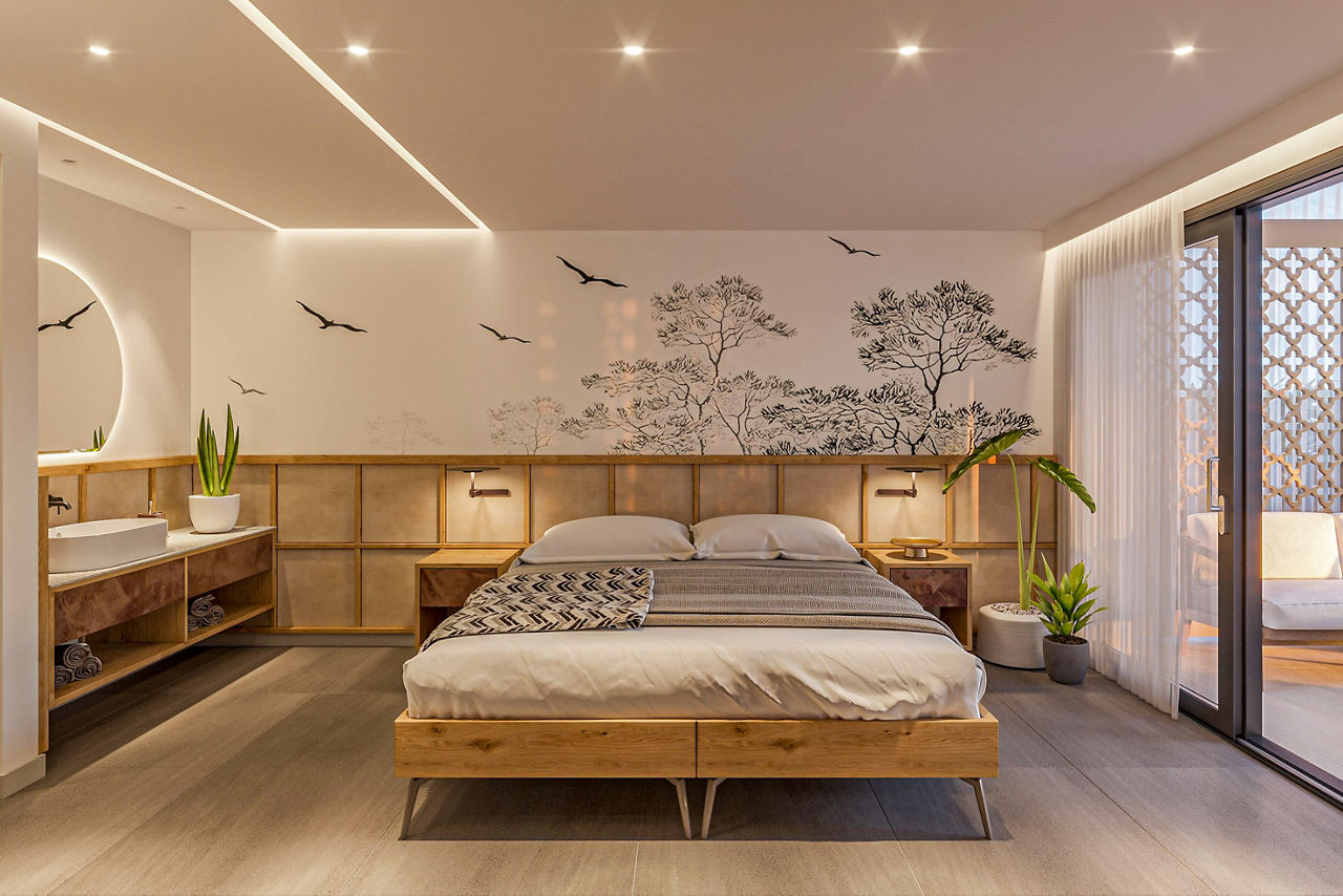 Double rooms with Garden View sleep up to 3 adults and have bathroom containing a bath or shower, air conditioning, hairdryer, flat screen television and balcony or terrace. Bungalows, Family bungalows, Superior bungalows and Suites are also available.