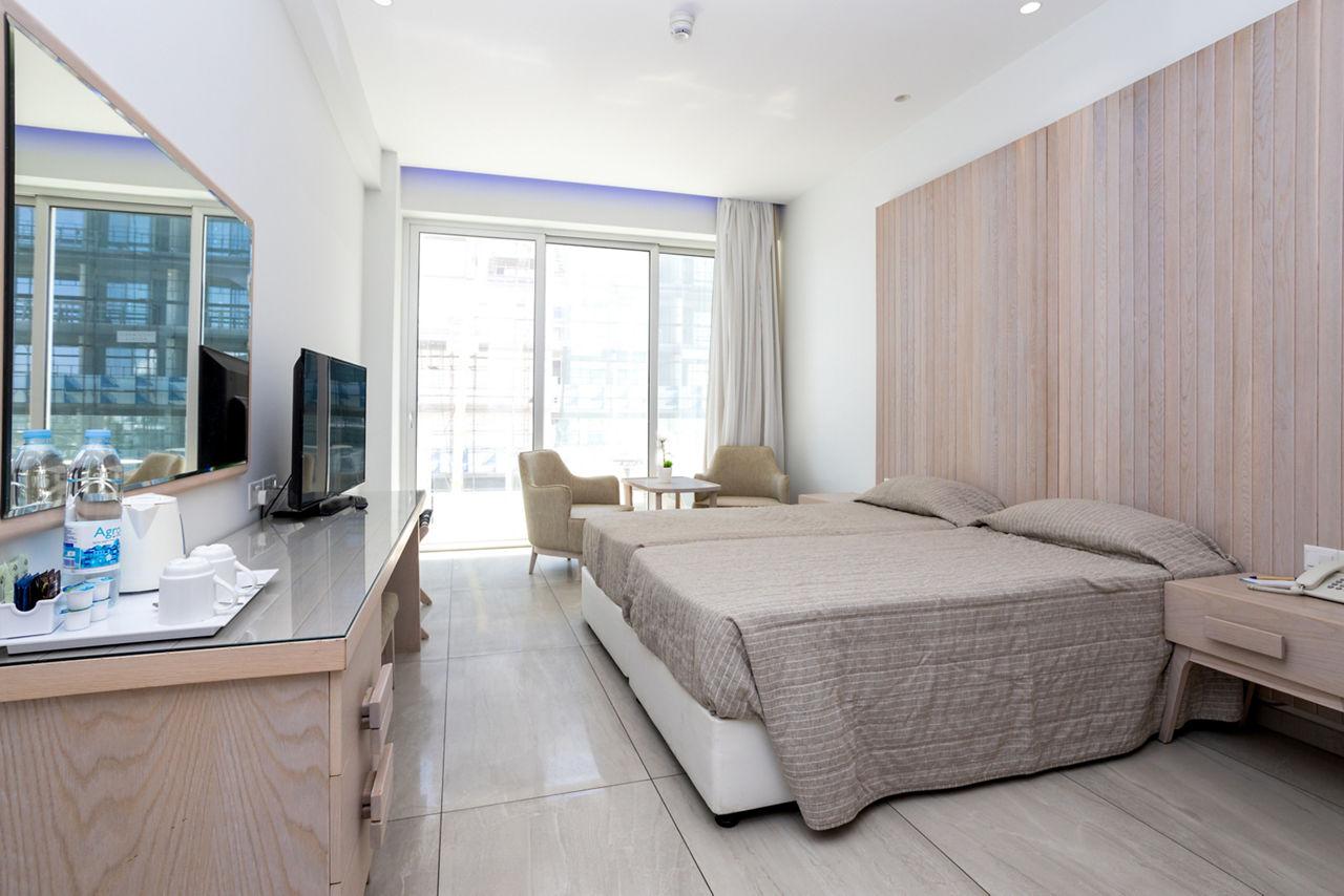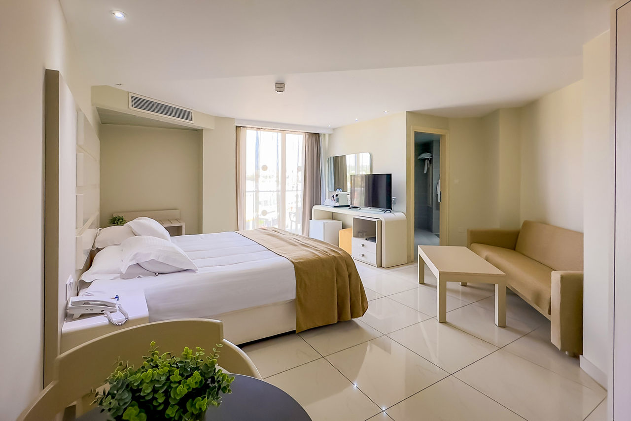 Ooh la la, this beachfront beauty?s sure to turn heads! Sleek, stylish and brimming with standout features including an amazing spa and the option to book a swim-up room, Tasia Maris Beach Hotel & Spa isn?t your average Nissi Bay hotel. This hotel is exclusively for adults, and guests have the option of the All Inclusive or All Inclusive Plus packages. The décor is contemporary and rooms are spacious, meaning guests can relax and rejuvenate after a day of sipping cocktails by the pool. What?s more, Ayia Napa resort centre is a short taxi-ride away for those wanting a more lively trip.