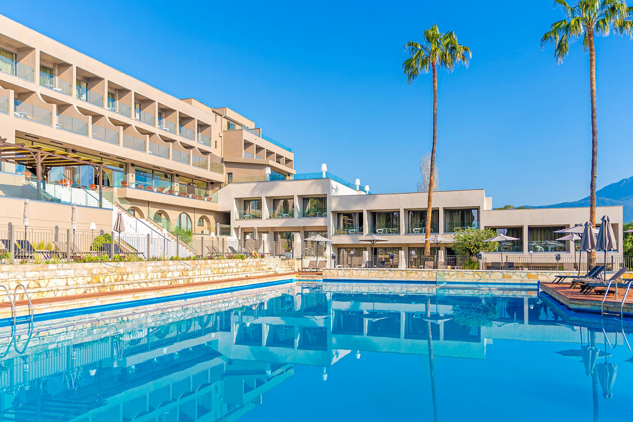 Iolida Corfu is a charming retreat located meters away from the shimmering waters at Dassia beach. With its inviting atmosphere and enjoyable entertainment, it offers a perfect blend of relaxation and adventure. Guests can enjoy modern accommodations, an all-inclusive dining experience, cocktails in the sun and exceptional service. The hotel's lush surroundings and proximity to local attractions make it an ideal destination for families and couples alike, ensuring a memorable stay in this idyllic paradise.