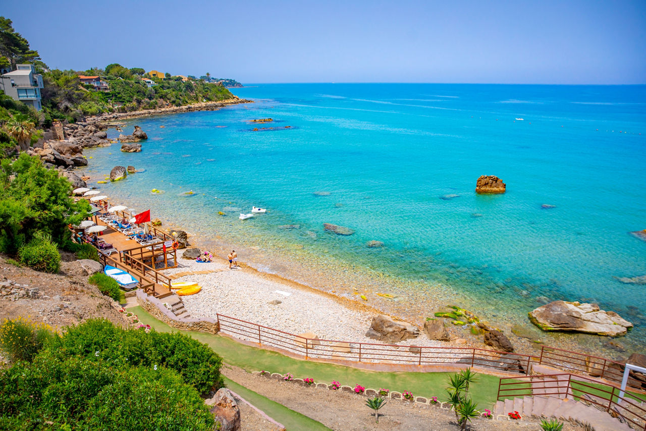 Perched on a hillside on the outskirts of Cefalù, the Calanica Hotel offers a charming village-style retreat surrounded by lush gardens, all overlooking a breathtaking sea backdrop?where every sunset is unforgettable. The Polynesian-style bungalows, each boasting spectacular sea views, exude a charming traditional ambiance and come fully equipped to ensure a serene and comfortable stay in this dreamy coastal oasis. Sip a refreshing cocktail on the terrace while soaking in the stunning views, or unwind by the gorgeous swimming pool. For those seeking activity, a tennis court awaits, while the hotel's private pebble beach, complete with complimentary sun loungers, provides the perfect spot for relaxation.