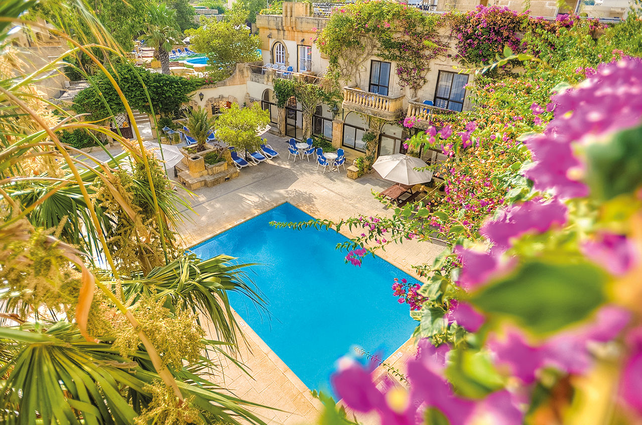 The Cornucopia Hotel is an idyllic retreat, nestled high above a valley with views of the surrounding countryside and distant sea views. Converted from a typical Gozitan farmhouse dating back 300 years, this family-run hotel is full of local character and charm. Picturesque Xaghra village square is a short walk away with its restaurants, cafes and bars, making this hotel the perfect choice for those wanting a relaxing and tranquil holiday in Gozo.