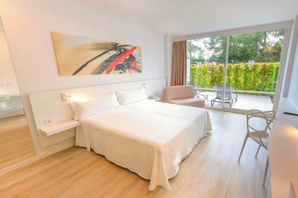 Set in the stunning bay of San Antonio, Els Pins Resort and Spa is a chic property offering the most spectacular views of the shimmering Med. Situated in a prime location the hotel benefits from direct sea access and is nearby to an array of bars and restaurants. The property boasts excellent facilities including a luxurious spa, complete with Turkish baths, a sauna and a variety of treatments designed for relaxation and wellness in mind. Spend your days lazing by the poolside and grab a refreshing cocktail from the pool bar. As the sun sets enjoy delicious food at the buffet restaurant. Suitable for both couples and families, Els Pins Resort & Spa makes the memorable and relaxing holiday you deserve!