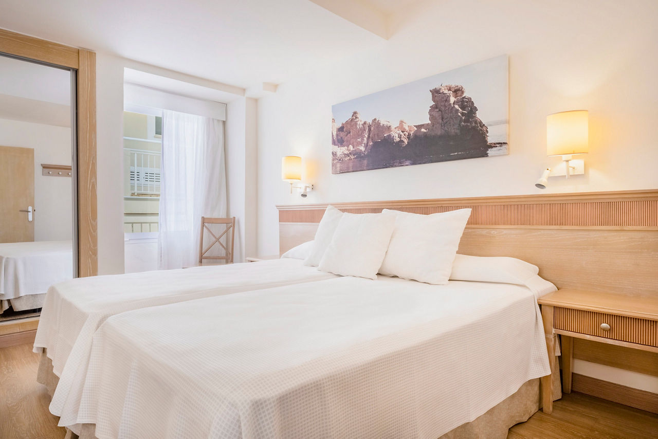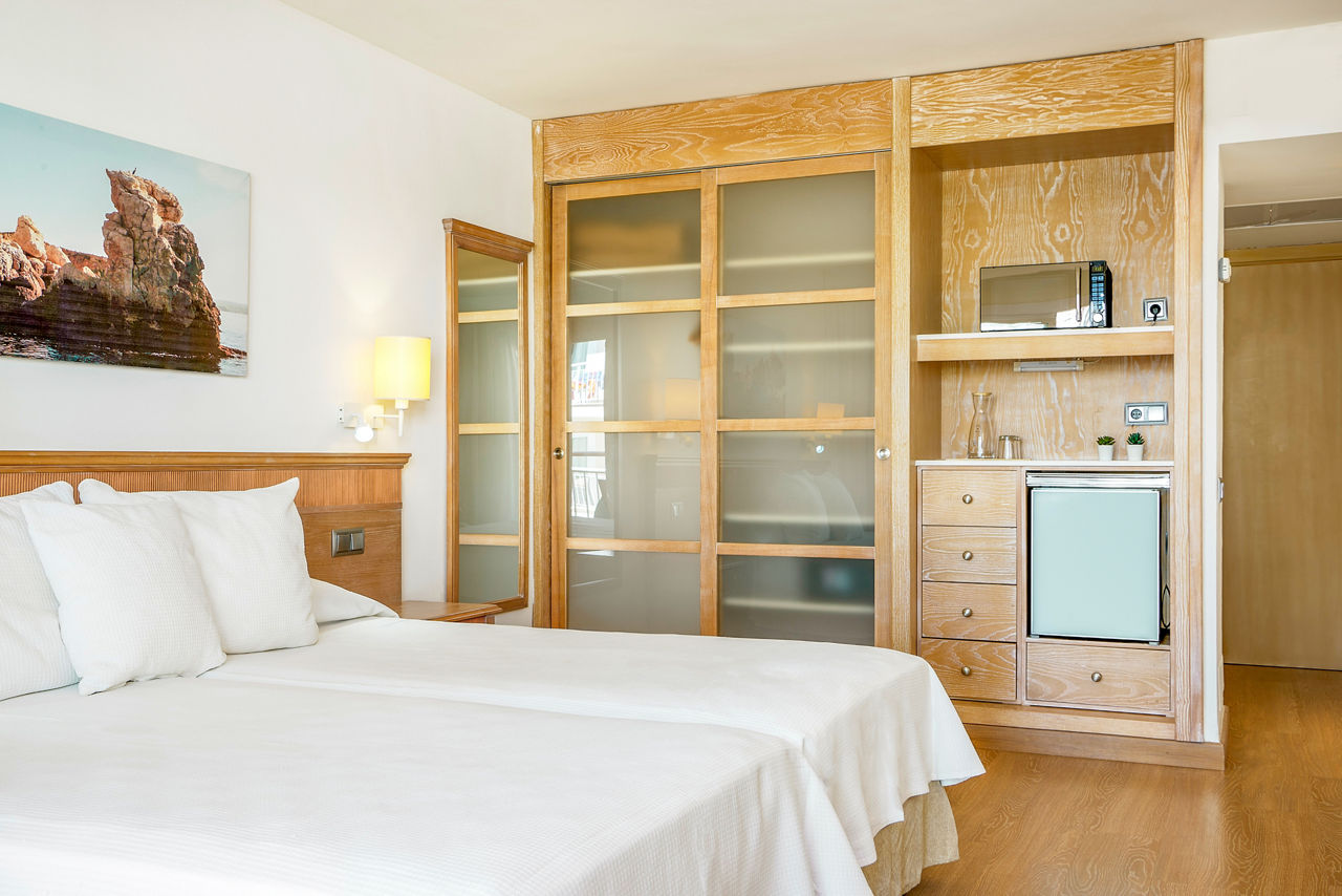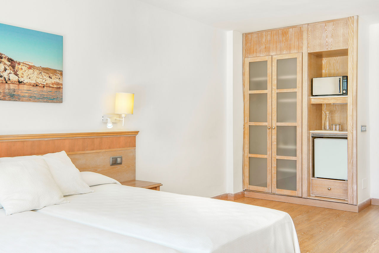 Double rooms sleep up to 2 adults and have air-conditioning, satellite TV, kitchenette, full bathroom and balcony or terrace. Family rooms sleeping up to 2 adults and 2 children with a bedroom and separate living room with 2 sofa beds, Double Superior rooms and Single rooms are also available.