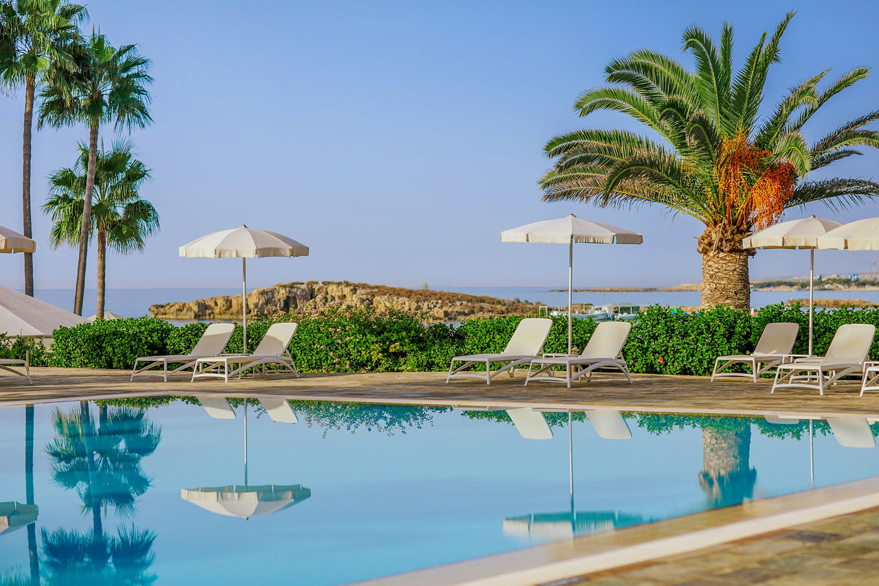 Nissi Beach Resort has a fantastic beachfront setting with lush garden areas providing a tranquil environment. The sandy Nissi Beach is one of the island?s finest beaches, famous for soft white sands and clear waters features plenty of water sport opportunities. Contemporary rooms and suites are located across the main building, bungalows and the two-storey Garden Wing. A fantastic range of dining options includes a beachfront taverna, Ambrosia Restaurant within the gardens and beach snack bars.
