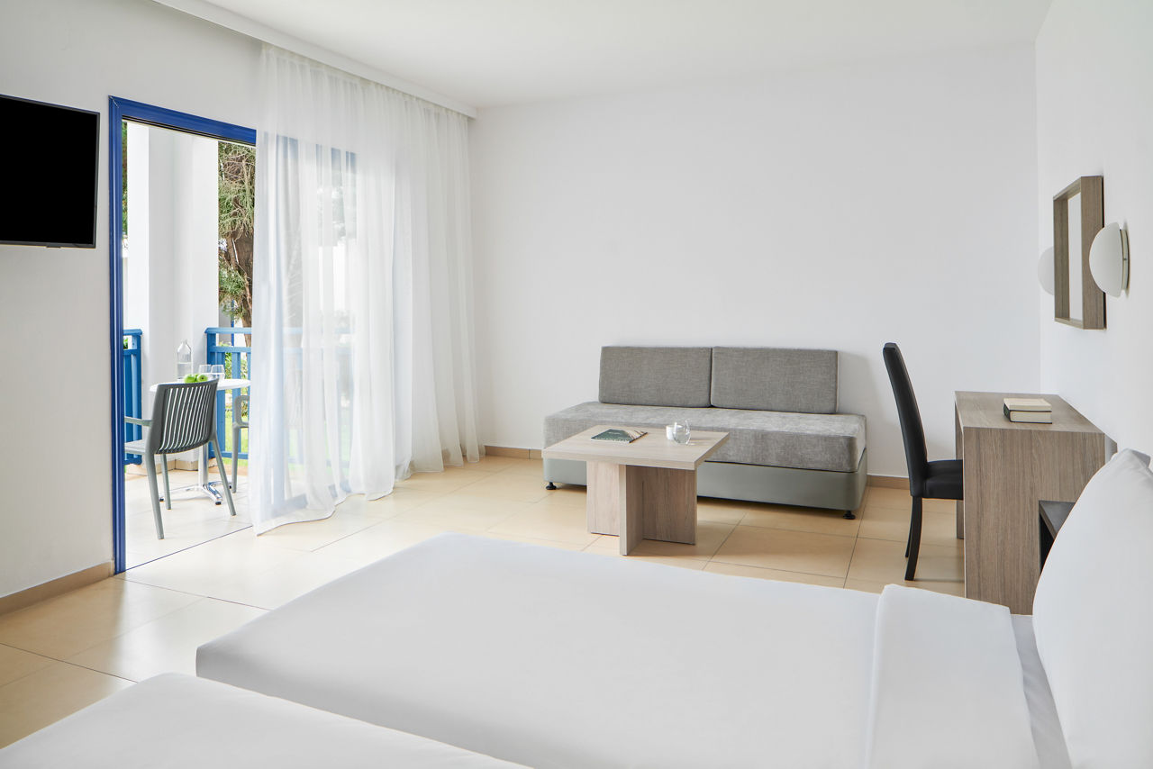 Right by the golden sands of Vathia Gonia Beach, Atlantica Callisto is a friendly village-style resort close to Ayia Napa. Studios and suites are set among gardens, with outdoor and indoor pools for relaxing dips. Dining is easy with a buffet restaurant, ? la carte option and a choice of bars. Families will love the children?s section of the main pool and daytime entertainment, while evenings bring laid-back shows and a welcoming atmosphere. With Bed