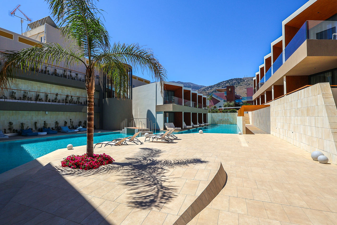 Harmony Boutique Resort is located in the picturesque coastal fishing village of Georgioupolis and provides an exemplary experience. The luxurious feel is not just limited to the spacious rooms, with the gastronomical delights of the The Ophelia Signature Restaurant. For a change of scenery you are a short walk to the beachfront and Corissia Park where there is a further spacious pool area, bar and restaurants as well as being in the perfect starting point to explore the larger towns of Chania and Rethymnon. After an action packed time exploring, make the most of the hotel's private spa suites or book in for a massage to help you really relax.