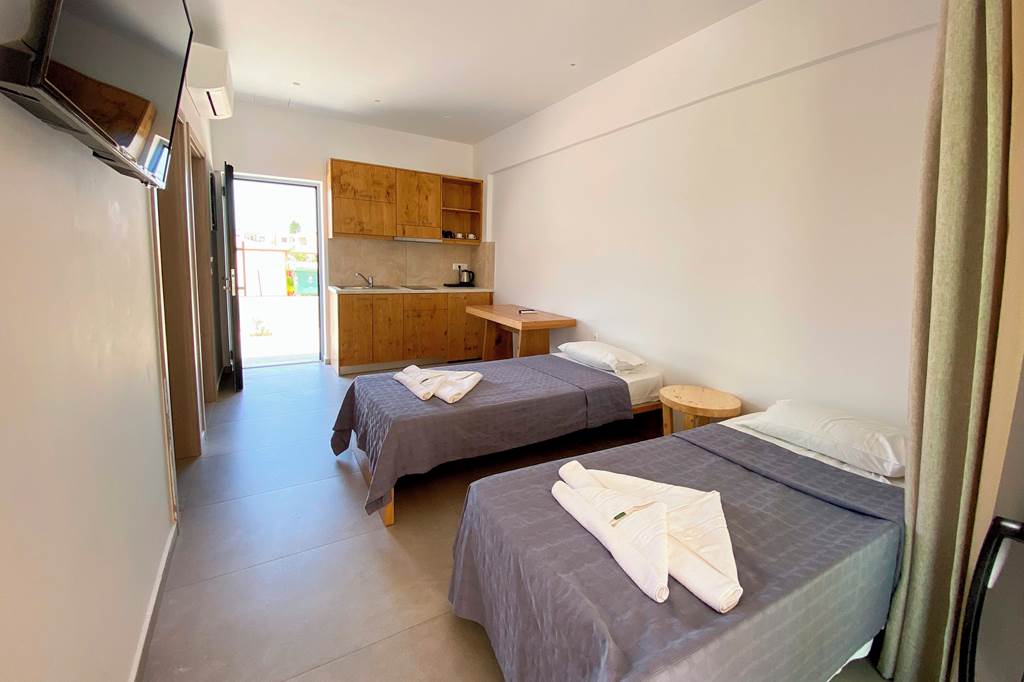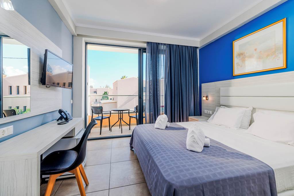 Double or Twin rooms sleep up to 2 adults and 1 child and have double or twin beds, bathroom with shower, air conditioning*, hairdryer, TV, fridge, tea and coffee making facilities and balcony or terrace. One Bedroom suites and Two Bedroom suites are also available.