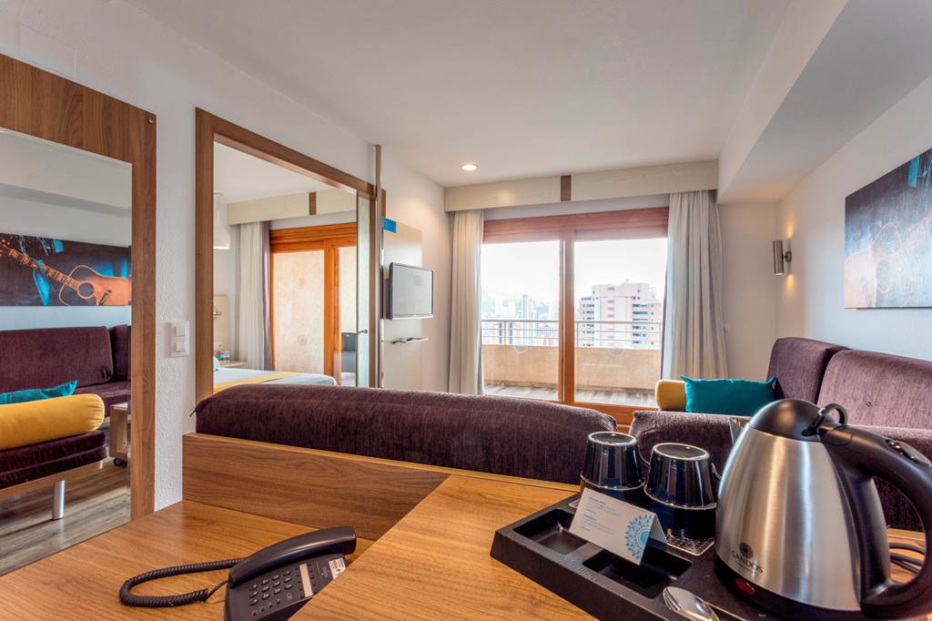 Welcome to one of Benidorm?s most popular properties. This stylish, all-suite complex is equipped with fantastic facilities, modern décor and an incredible location. You?ll find Sandos Benidorm Suites within walking distance of the award-winning Levante Beach and Benidorm?s buzzing nightlife. You can enjoy the fantastic entertainment programme, à la carte restaurant and an on-site Indian eatery. There are also excellent children?s facilities, such as movie nights, a lounge with games consoles and a playground! Multiple outdoor pools, comfortable sunbeds for poolside lounging and delightful suites to retreat to await at Sandos Benidorm Suites.