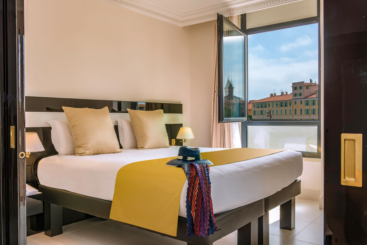 This luxurious hotel welcomes guests with warm hospitality and its excellent service. Situated close to Place Massena, the famous square in Nice Old Town offering plenty of shops, bars and restaurants nearby. The hotel restaurant is renowned for its excellent quality and choice of cuisine whereas the bar will mesmerise you with stunning views of the Old Town of Nice. Spend the day exploring the city or simply relax at the roof top swimming pool taking in the amazing city views. Guest rooms are beautifully appointed, featuring refreshing tones and classical elegance. This hotel is a perfect choice for those looking for luxury, great service and a stunning location.