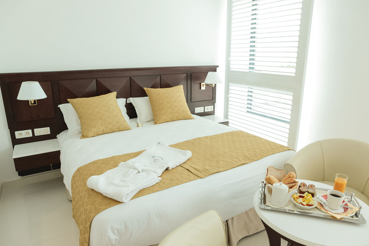 Comfortable Double or Twin rooms sleep 2 adults and have bathroom containing a bath or shower, air conditioning, hairdryer, slippers, flat screen television, mini-bar and safety deposit box. Room upgrade options are also available.