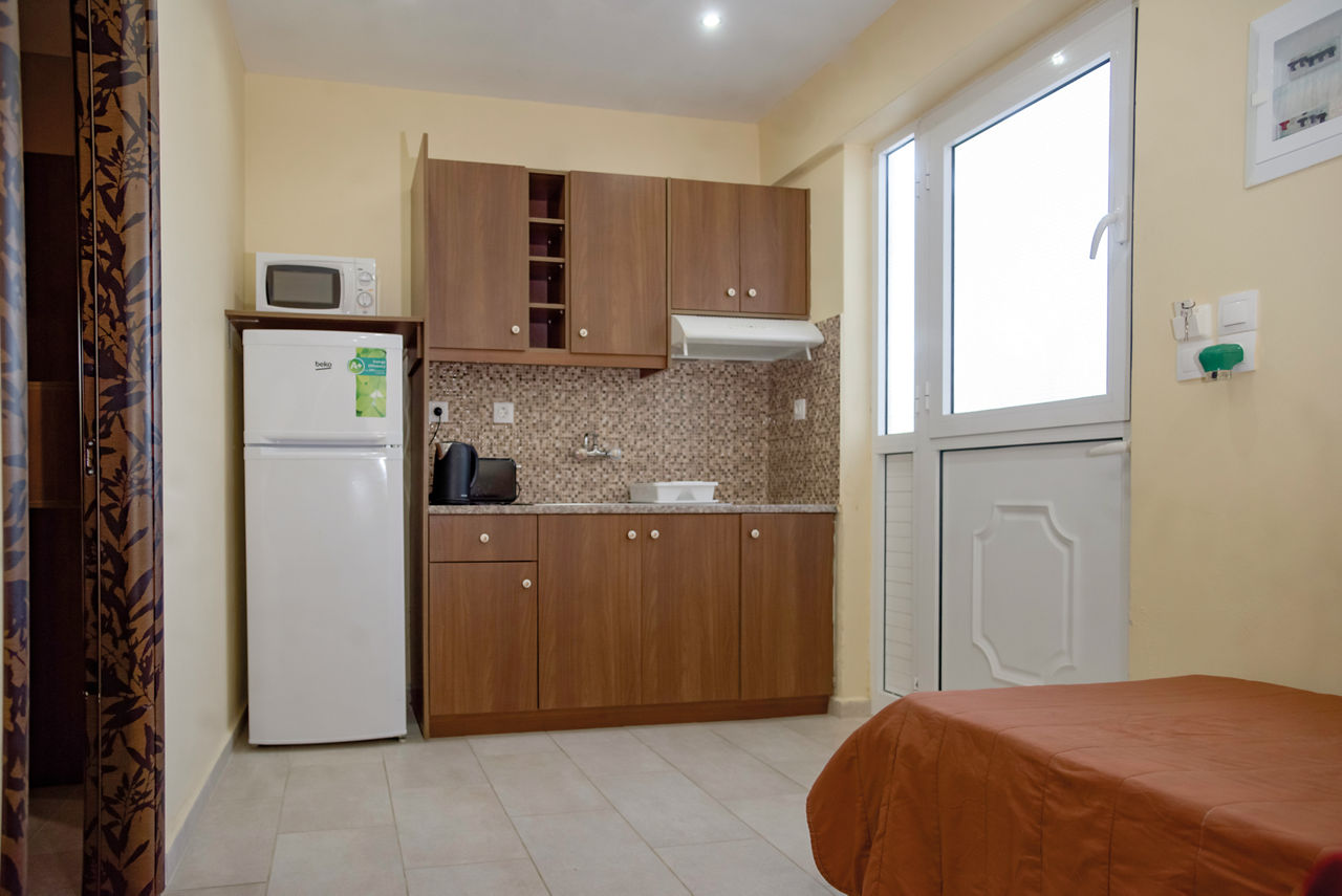 Studios sleep up to 2 adults and 1 child and have bathroom with shower, air-conditioning*, fridge, kettle, toaster, microwave and balcony or terrace. 2 Bedroom apartments sleeping up to 4 adults and 1 child are also available.
