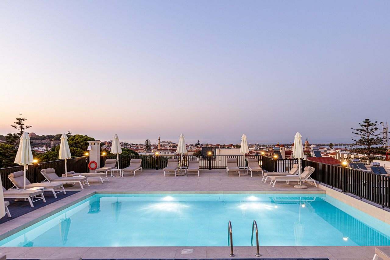 Located in the heart of the city of Rethymnon, Jo-An Palace Hotel is ideally located just minutes away from the city's charming old town, picturesque Venetian Harbour and sandy beaches. The rooftop pool sets the scene with extensive views of the city and sea, and provides a great option for soaking up some sun. Rooms are fresh, modern and comfortable which make this the ideal base for friends or couples wanting to explore Crete or simply unwind and relax.