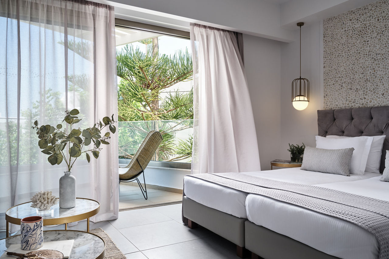 Superior Double rooms with Garden View sleep up to 3 adults and have bathroom containing a shower, air conditioning, hairdryer, bathrobe and slippers, fridge, tea and coffee making facilities and balcony or terrace. Room upgrade options are also available.